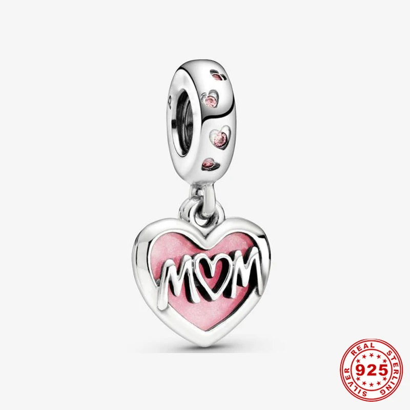 Бусина-Шарм мама из серебра 2020 пробы, в форме сердца