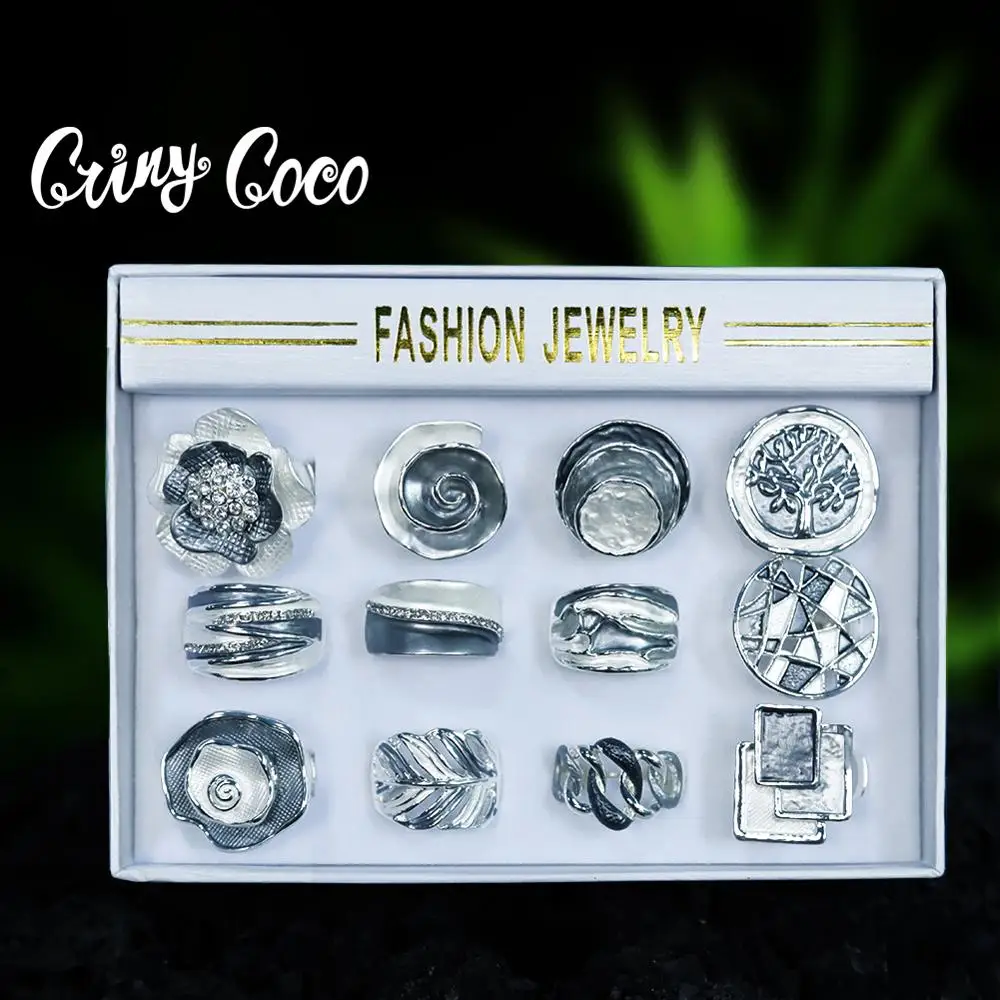 Cring Coco, 12 шт., винтажные богемные ювелирные изделия с цветком розы, очаровательное дерево живых колец, наборы для женщин, кольцо на палец, друзья, свадебные подарки
