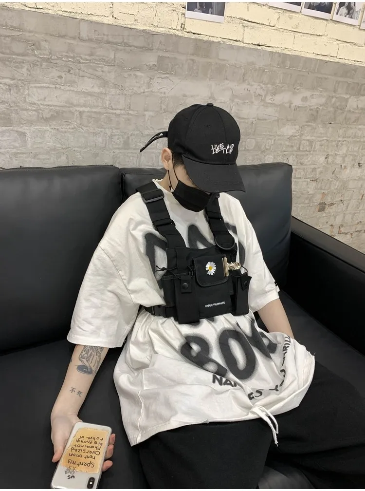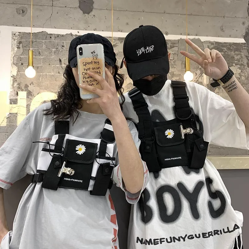 Нагрудная сумка из ткани Оксфорд для мужчин и женщин, маленькая квадратная уличная нагрудная сумочка в стиле хип-хоп, жилет в стиле унисекс