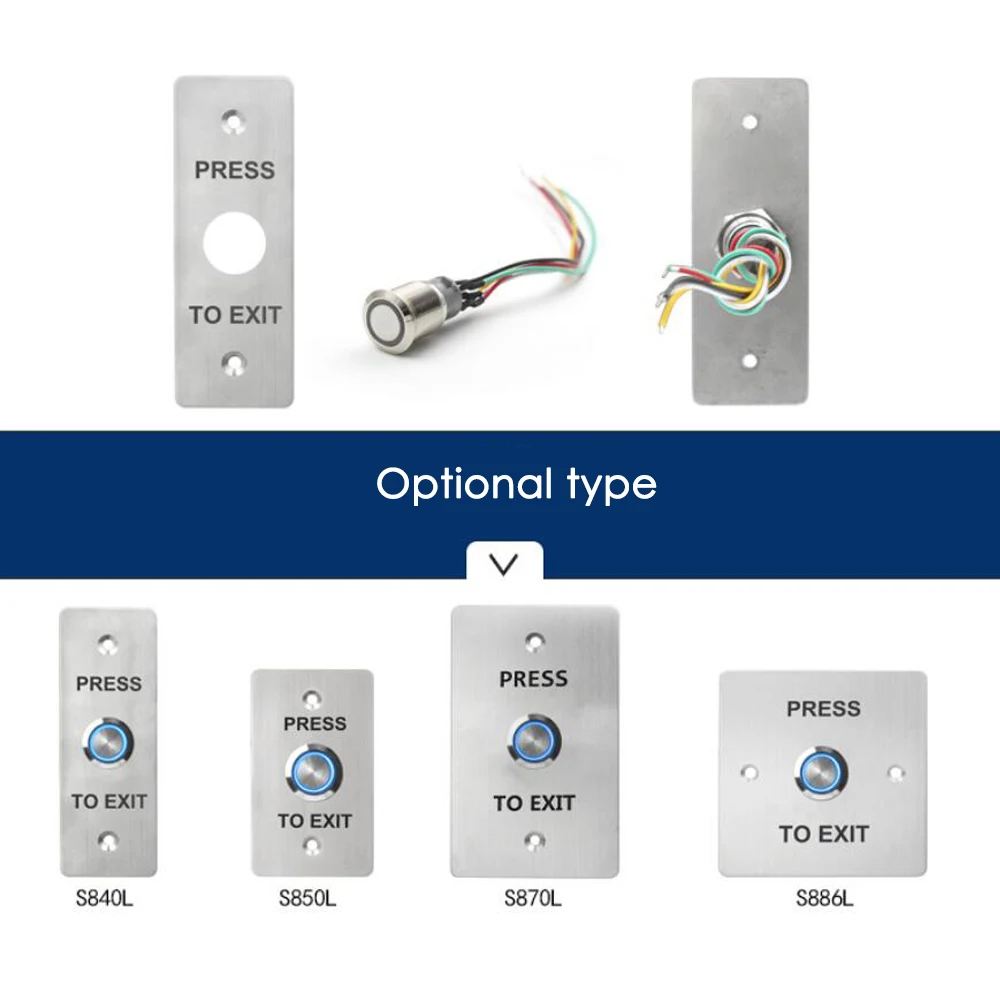 Размеры:S840L:132*92*48 мм Стандартная конструкция: алюминиевая панель, стальная кнопка Номинальный ток: 3 А @ 36 В постоянного тока Механический срок службы: 500000 протестировано Подходит для дверей: полая дверь Рабочая температура: 10 ~ + 55 градусов (14-131F) Влажность при эксплуатации: 0-95% (относительная влажность) Материал панели: алюминиевая панель, пескоструйная обработка Вес: 0,2 кг
