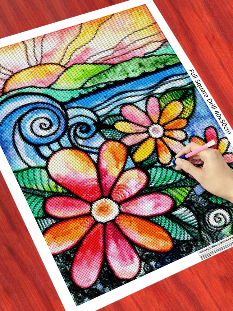 Алмазная живопись, красочные цветы, полная квадратная Алмазная выши...