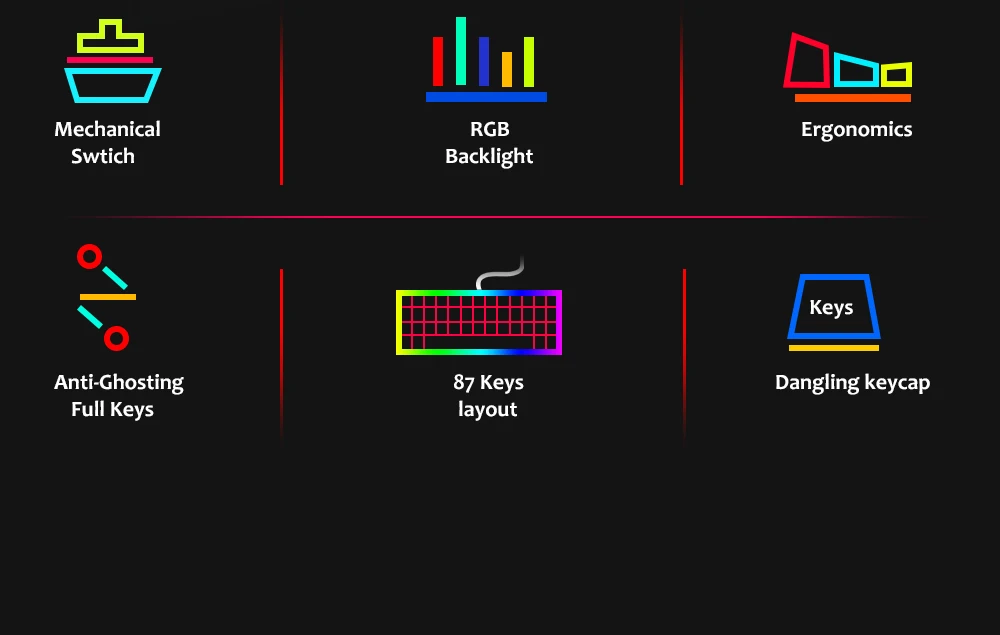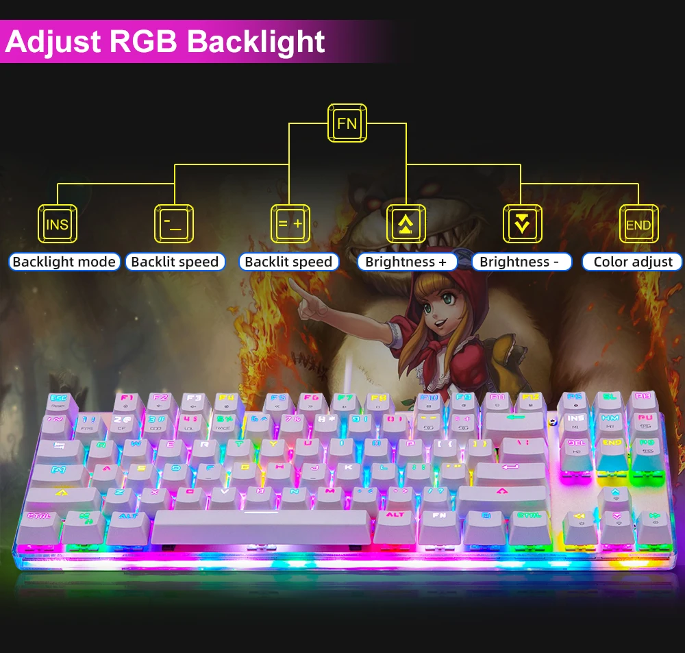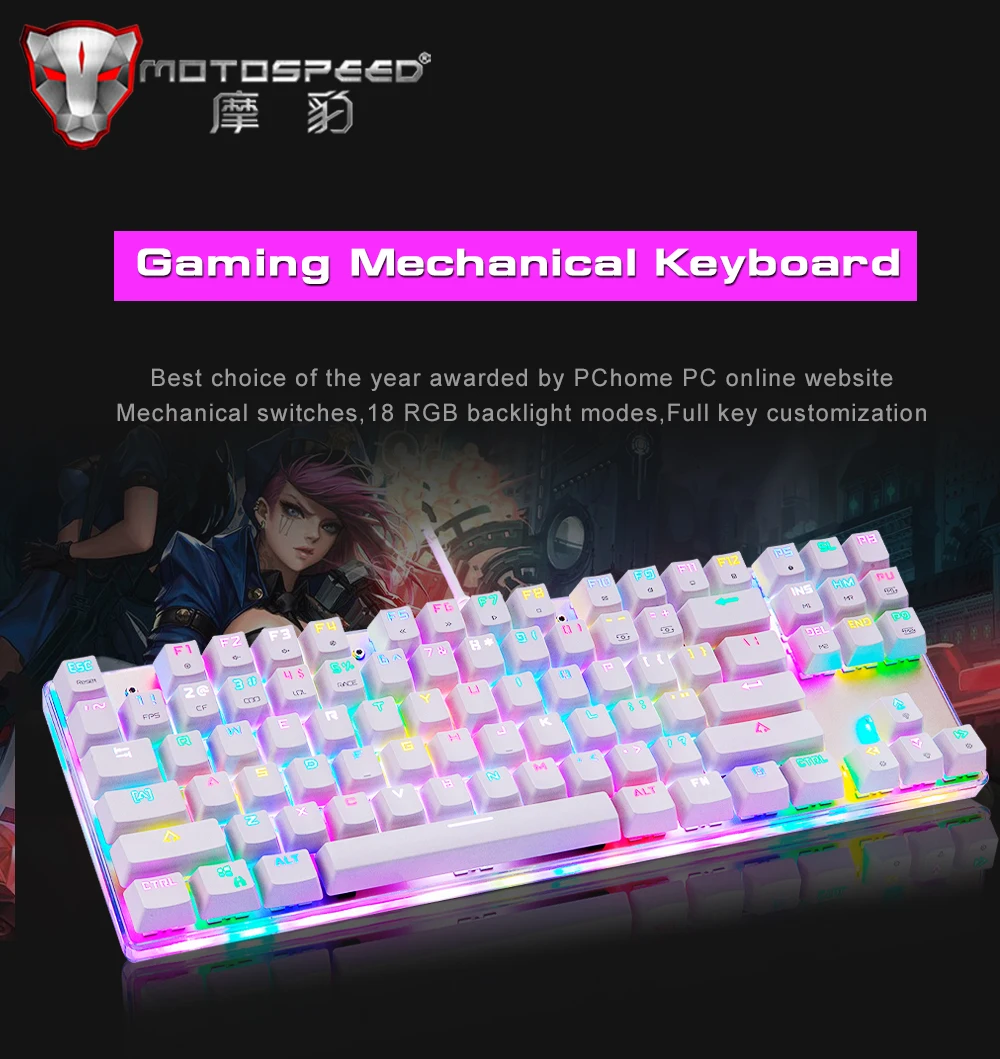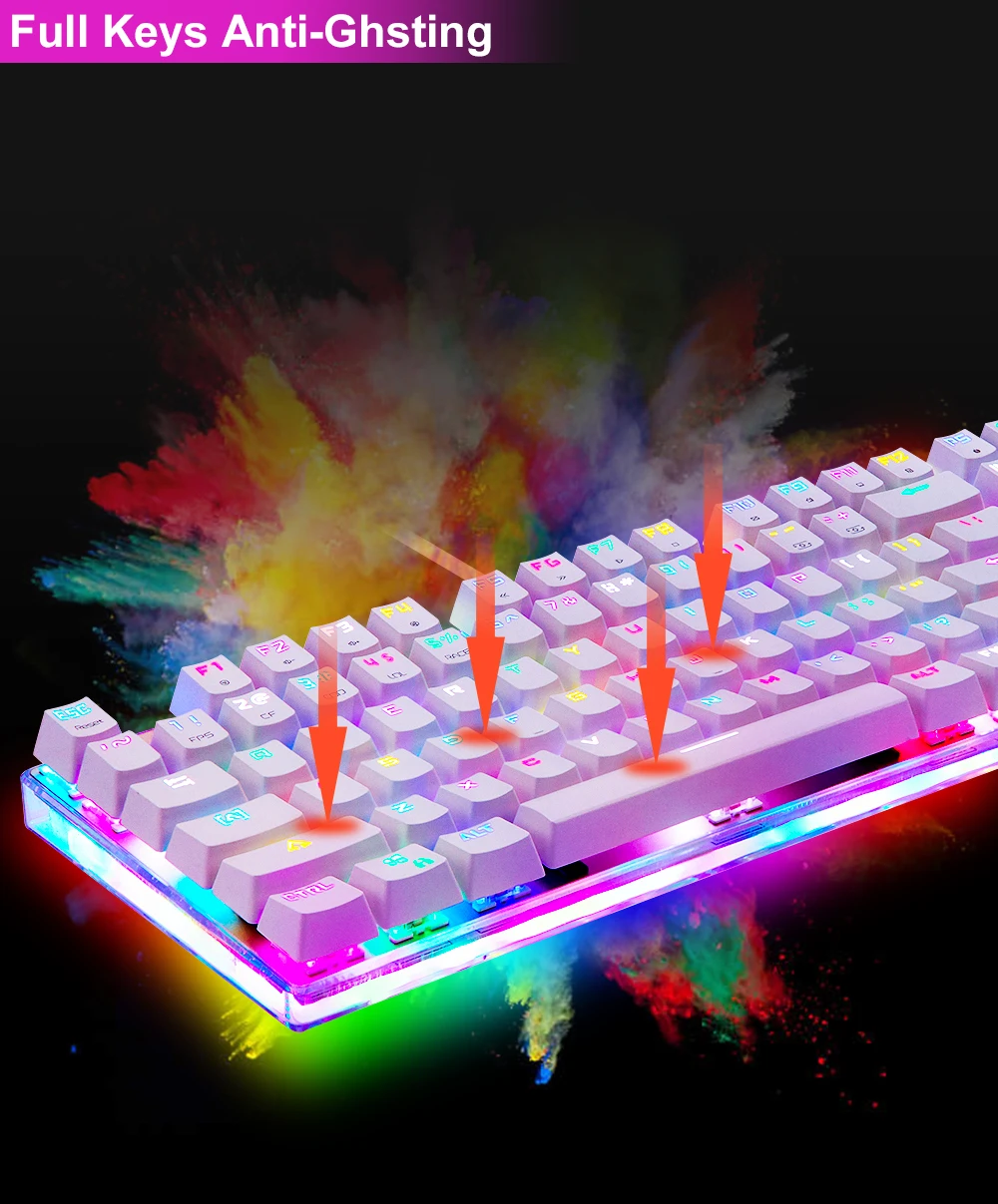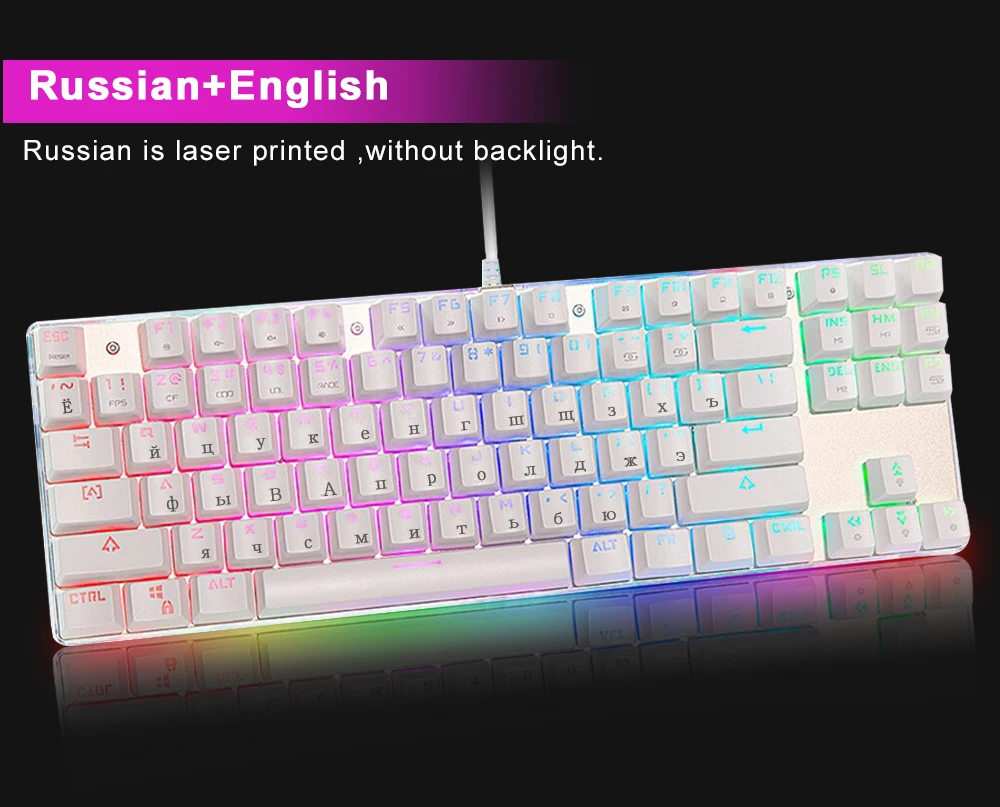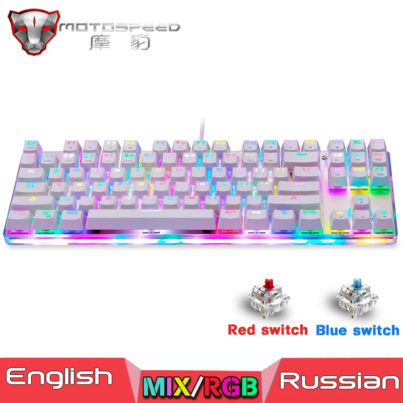 Клавиатура Motospeed k87s игровая механическая, русскаяанглийская раскладка, с RGB-подсветкой, с защитой от фиктивных нажатий, USB