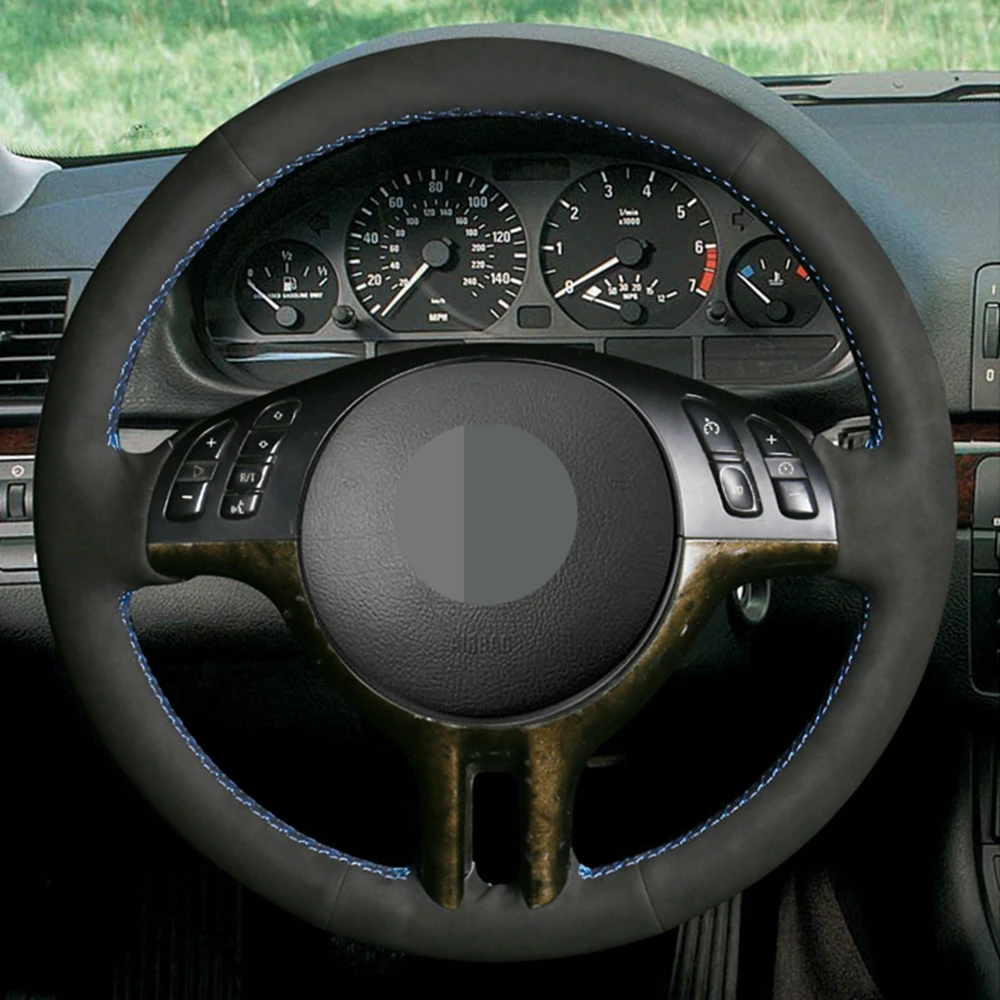 Сшитая вручную черная замша чехол рулевого колеса автомобиля для BM...