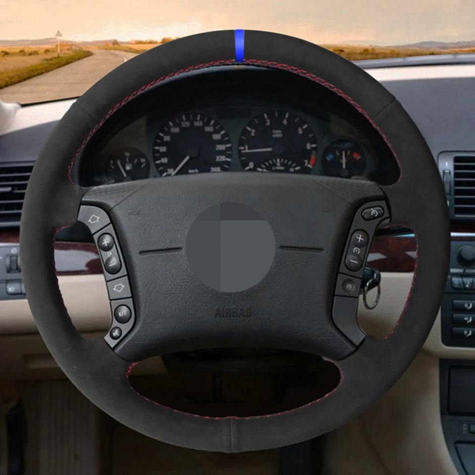 Черная замшевая чехол рулевого колеса автомобиля из натуральной кожи для BMW E36 1995-1997 E46 1998-2004 X3 E83 X5 E53 E38 1994-2001 E31