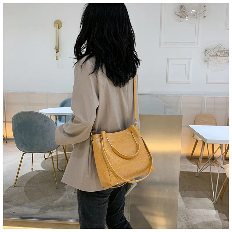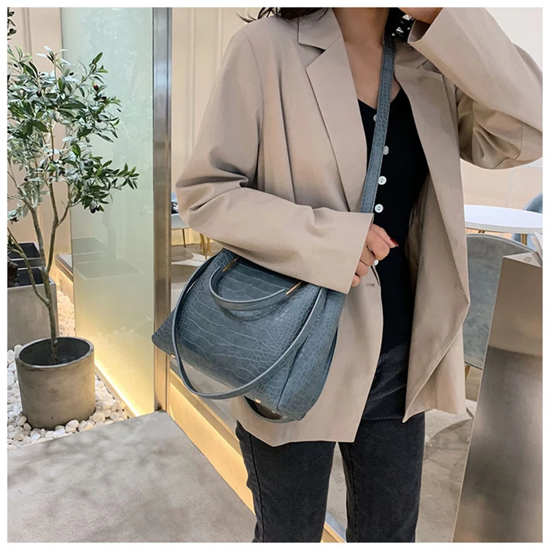 Сумка-мешок с каменным узором для женщин, сумка через плечо из искусственной кожи вместительная сумка через плечо, модный мессенджер, роскошная дамская сумочка