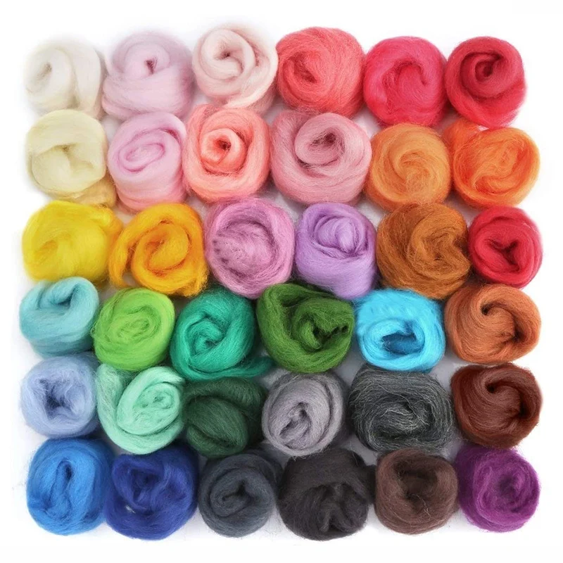 Пушистый и мягкий. Подходит для валяния DIY.Яркие цвета шерстяного волокна.Изготовлено из мягкой волокнистой шерсти. Отличное волокно для вязания игл.Идеально подходит для вязания игл и мокрого валяния: изготовление кукол, изготовление мыла, сушилки, любое ремесло и идеальный Детский Рождественский подарок.