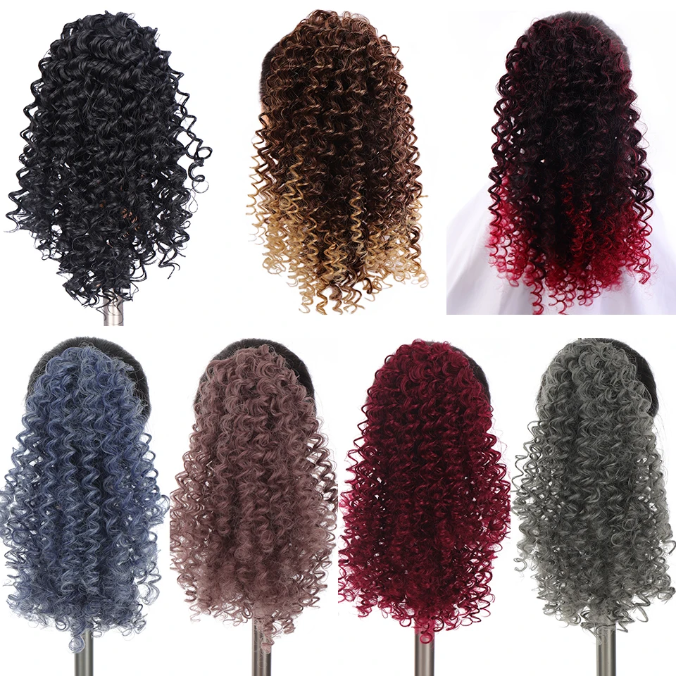 SHANGKE женские афро кудрявые 14 дюймов Синтетические волосы для наращивания хвоста на заколке Омбре коричневые красные термостойкие искусственные волосы парик