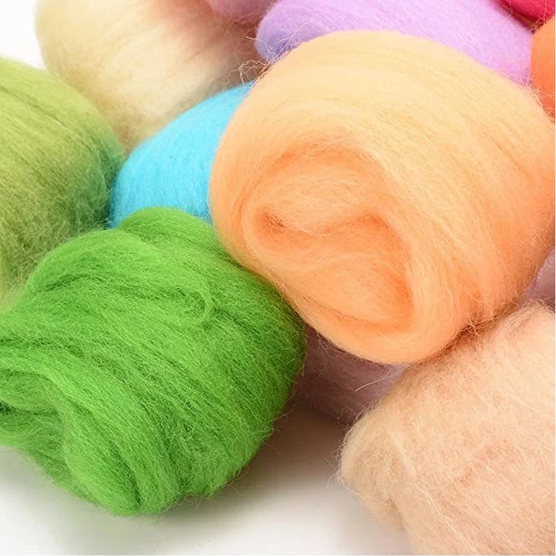 Пушистый и мягкий. Подходит для валяния DIY.Блестящий желтый 10 ярких цветов шерстяного волокна.Изготовлено из мягкой волокнистой шерсти. Отличное волокно для вязания игл.Идеально подходит для вязания игл и мокрого валяния: изготовление кукол, изготовление мыла, сушилки, любое ремесло и идеальный Детский Рождественский подарок.