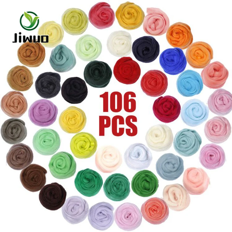 Jiwuo 10 г20 г50 г разноцветные шерстяные волокна набор Шерсть-ровинг иглы для валяния натуральные животные проекты ручной работы материалы сделай сам