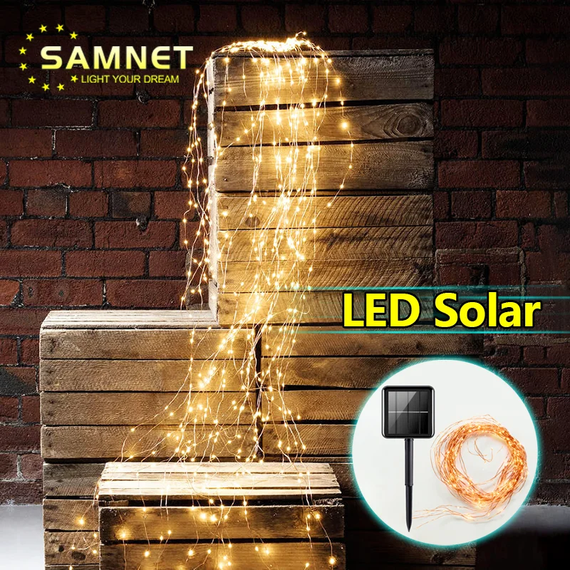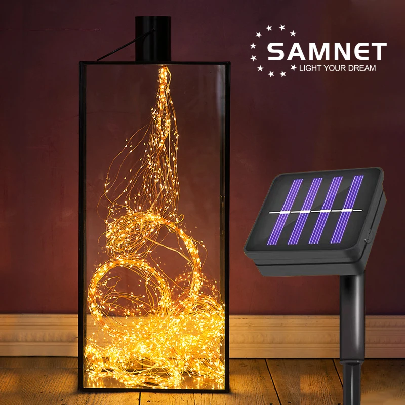 Светодиодная гирлянда на солнечной батарее, медный провод, 2022