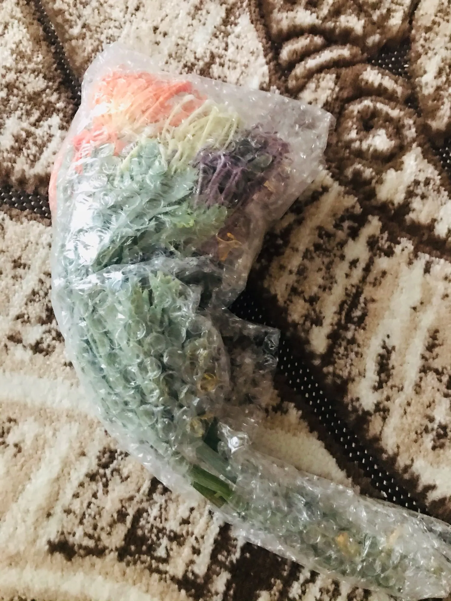 заказала 1.11.20 посылка пришла 18.11.20. Очень быстро. Цветы пришли согнутые, но при этом совсем не пострадали. С фотографировала сразу, чуть разогнув. Товар и продавца рекомендую !
