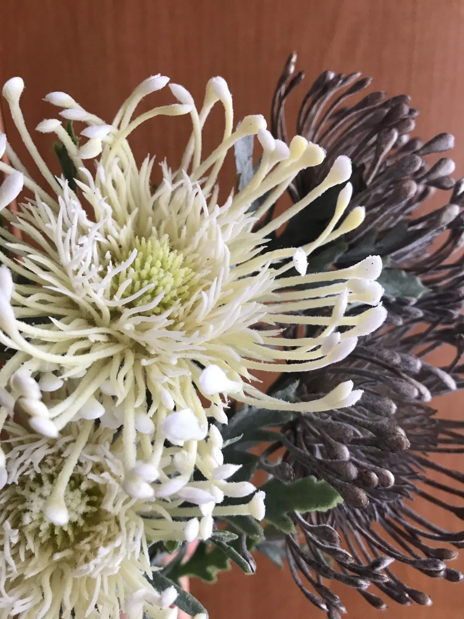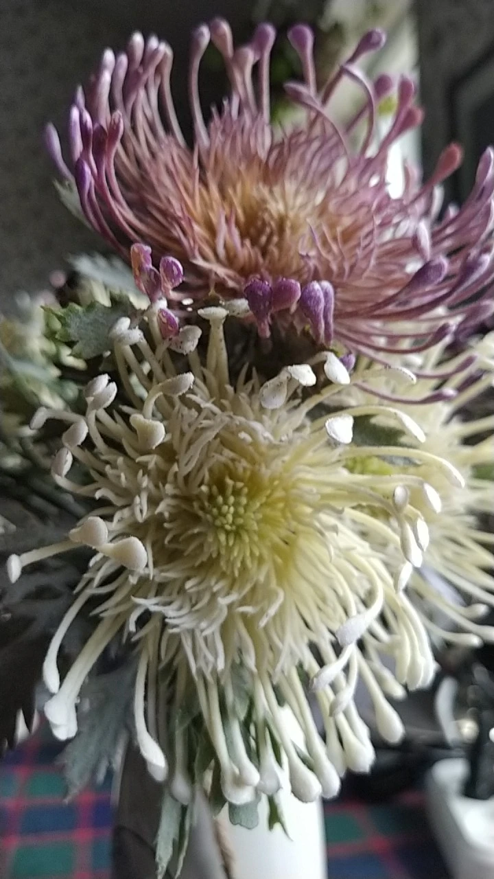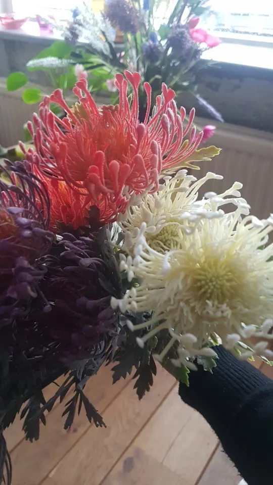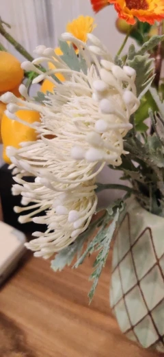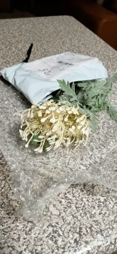 Хризантемы действительно очень красивые,но меня растроило что одна головка отвалилась,правда я ее сразу подклеила,очень смотрятся в вазе.но три штуки мало,еще буду докупать.