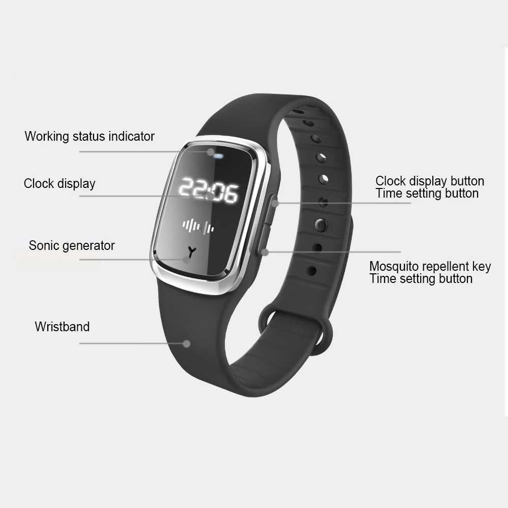 Репеллент от комаров, браслет для взрослых, детей, против комаров, ультразвуковой репеллент от насекомых-вредителей, USB зарядка, часыТехнические характеристики: