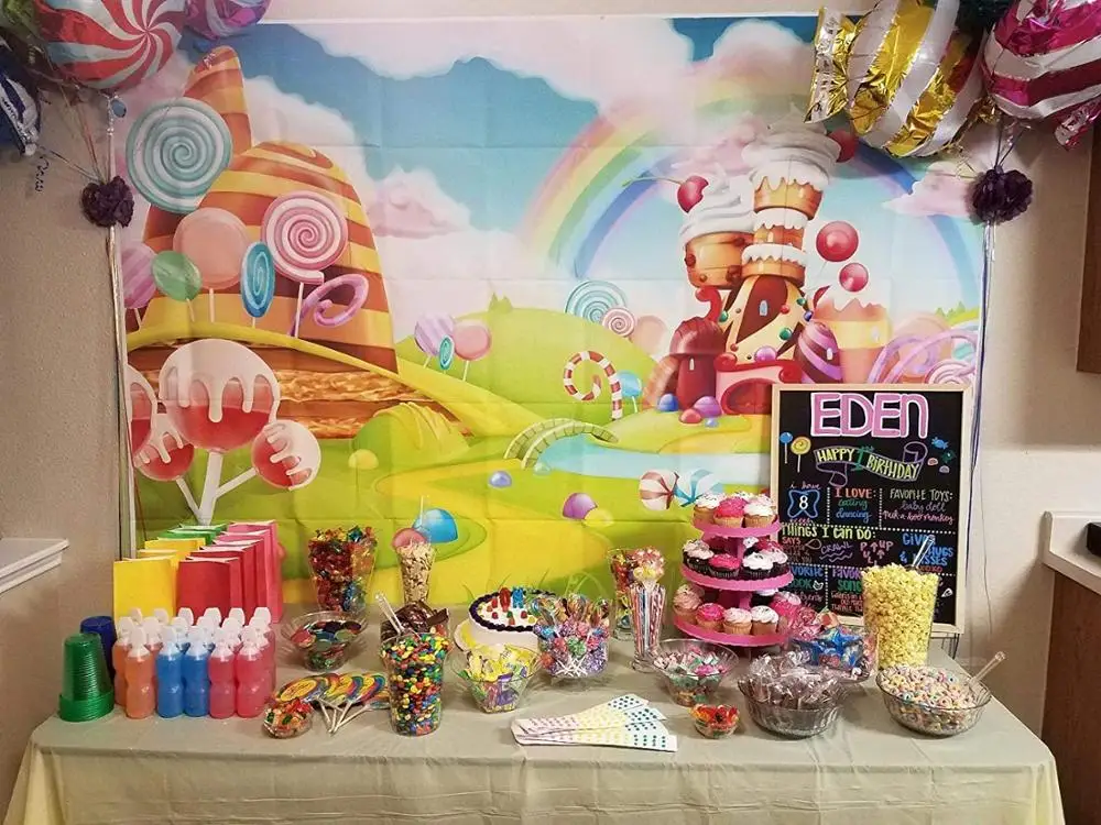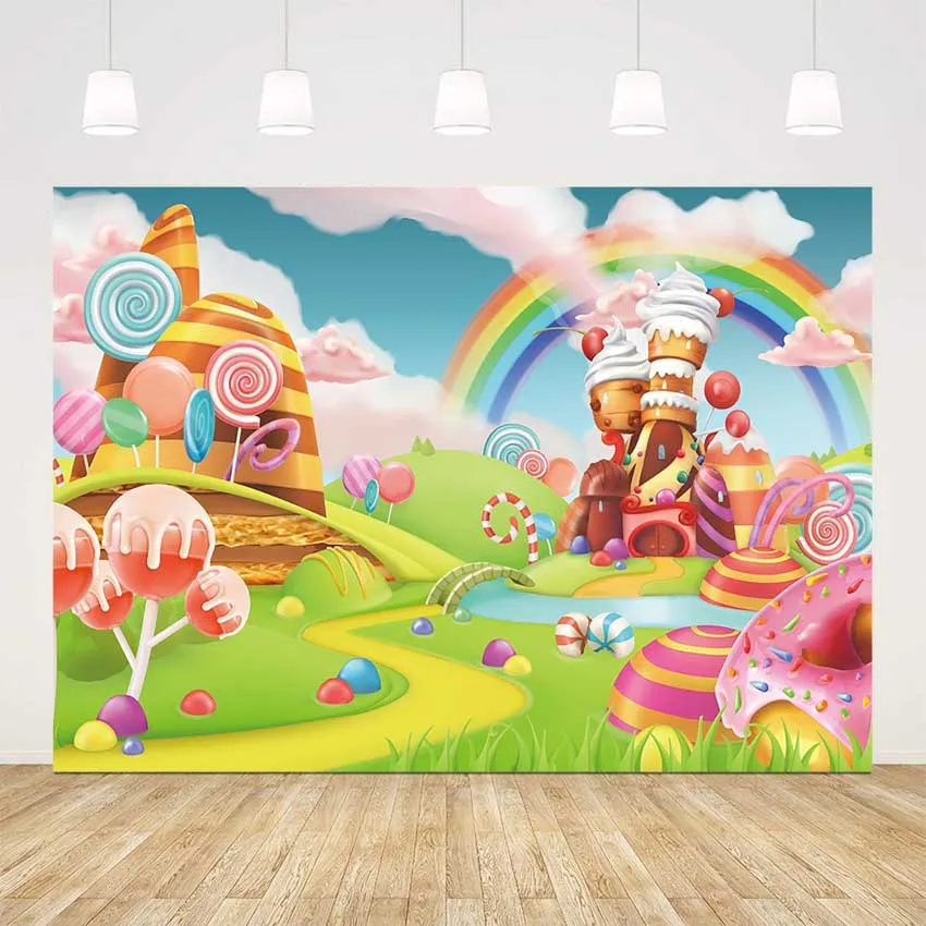 Красочный Радужный фон для фотосъемки детского дня рождения украшения для баннеров и симпатичное платье в мультипликационном леденцов, десерт фон для фотосъемки с изображением для маленьких мальчиков