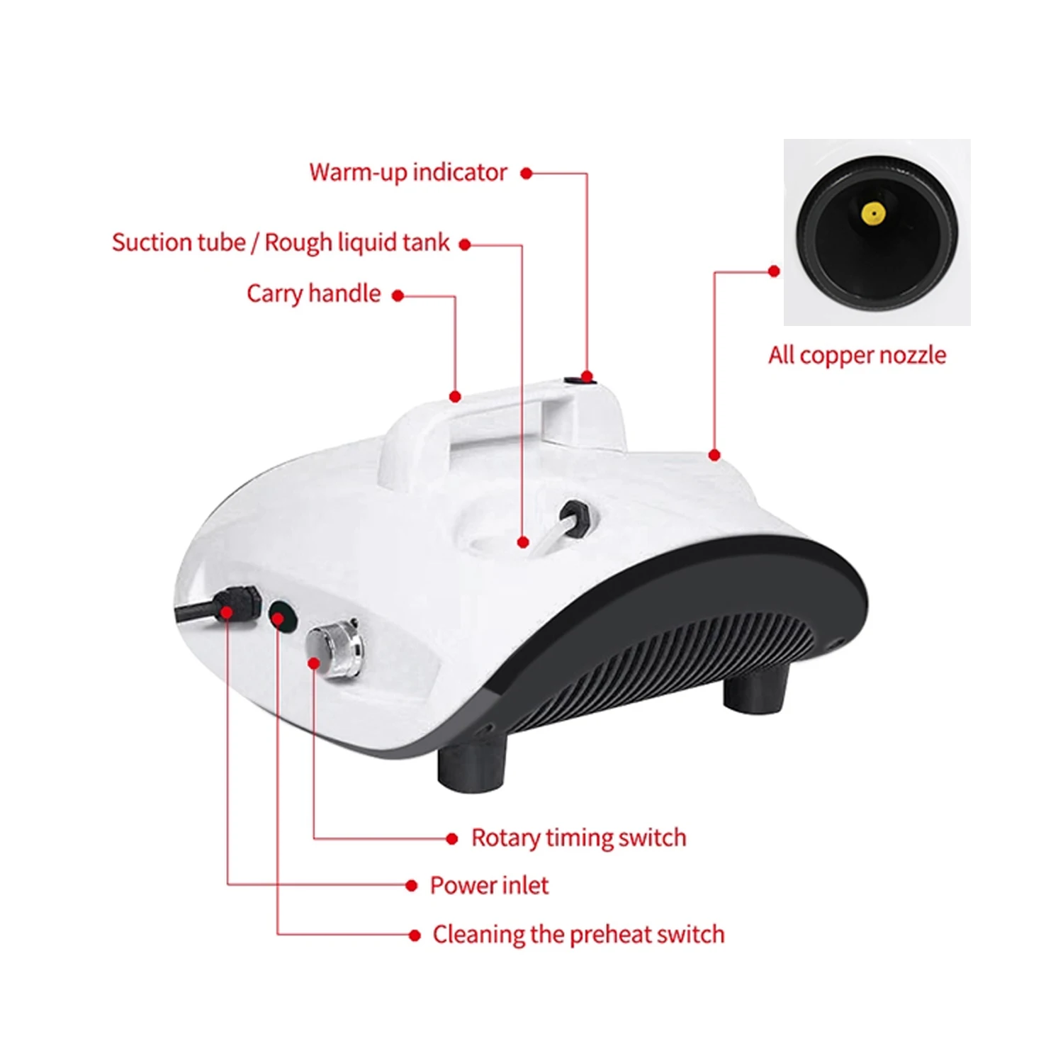 Поставка всех серий 400w800w900w1000w1200w1500w3000w Вт сценическая машина для тумана, вода, низкий туман, дымовая машина, запчасти для тумана, запчасти для вертикального/прямого сопла, струйный нагреватель, штанга, труба 220 В/110 В, постоянная температура, опционально сменный фитинг