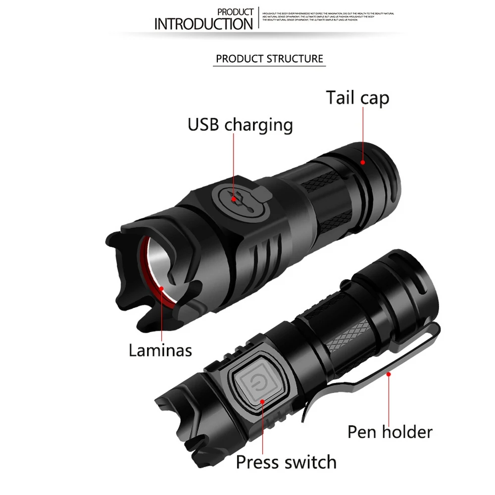 USB зарядка с фиксированным фокусом супер яркий алюминиевый сплав Мини Тактический фонарик