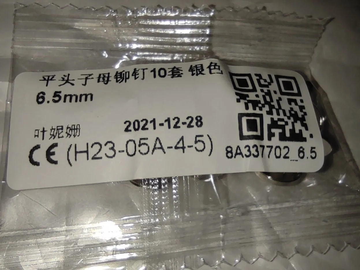 Однотонные заклепки с плоской головкой 10 компл.упак. 5 мм6,5 мм8 мм