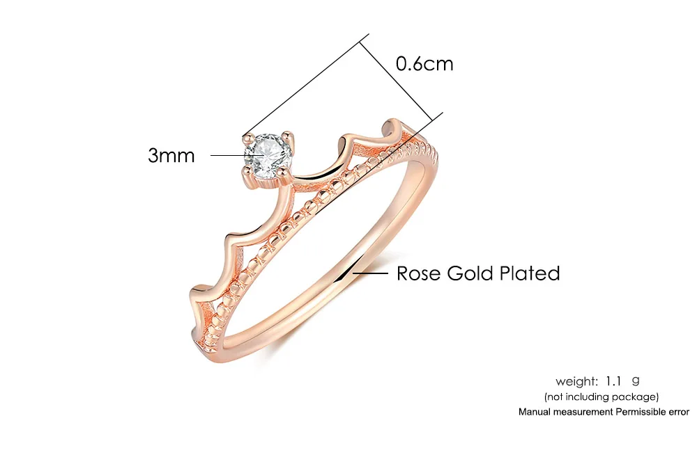 Новинка изящные кольца с короной принцессы для женщин модное кольцо на палец цвета розового золота для девушек модные ювелирные изделия R020