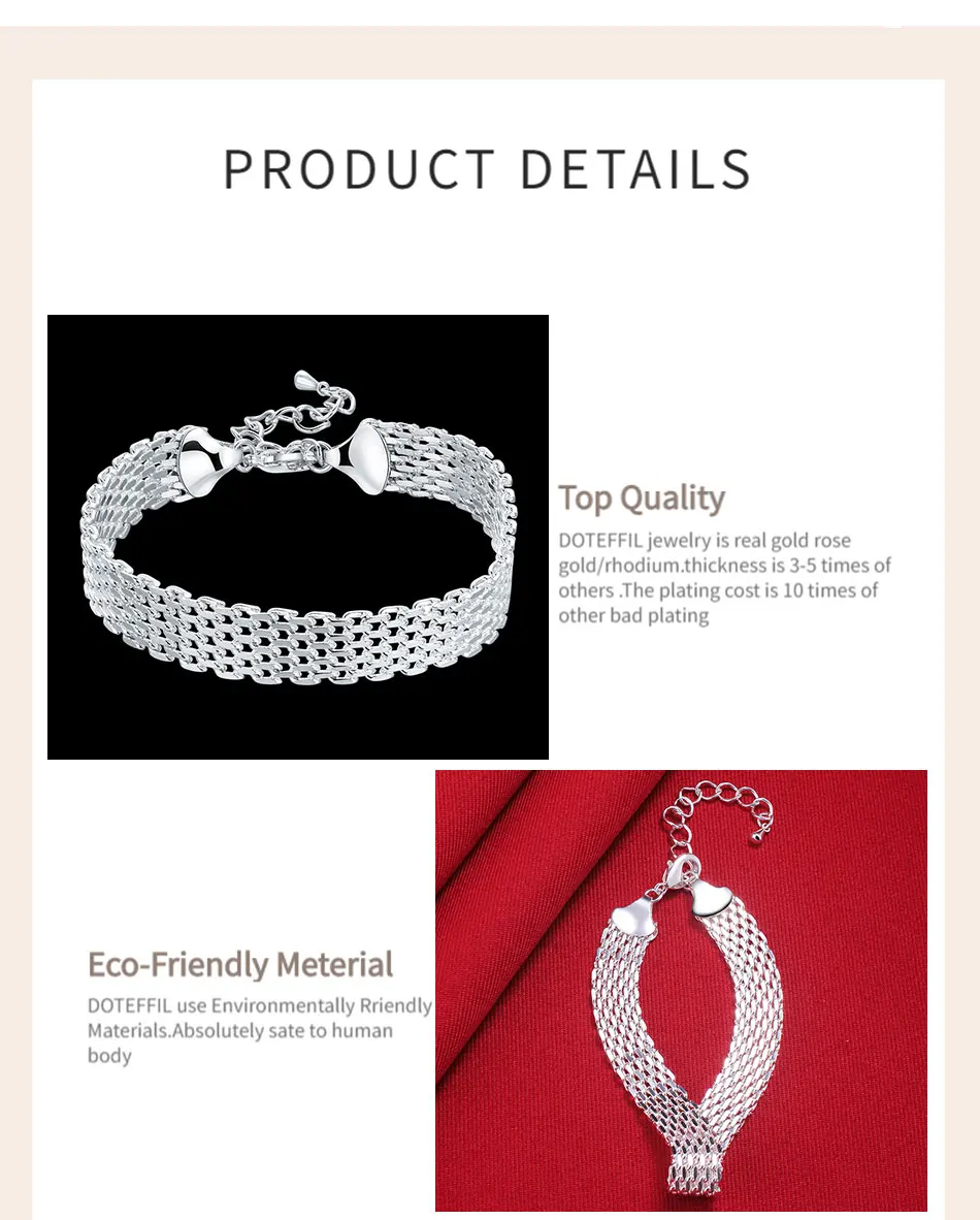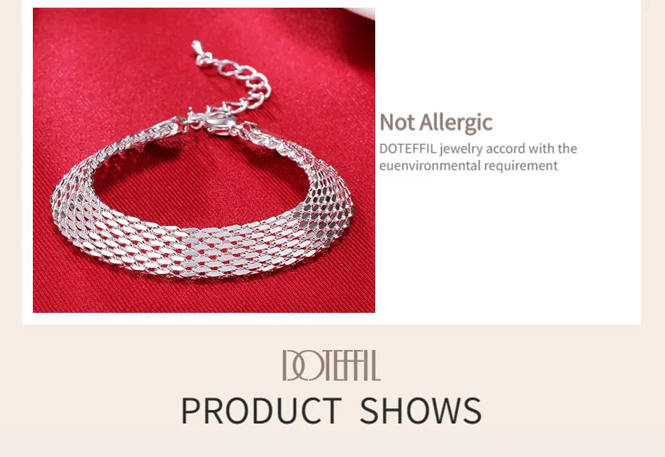 Плетеный Браслет-цепочка DOTEFFIL из стерлингового серебра 925 пробы для женщин, для свадьбы, помолвки, вечевечерние, модные украшения