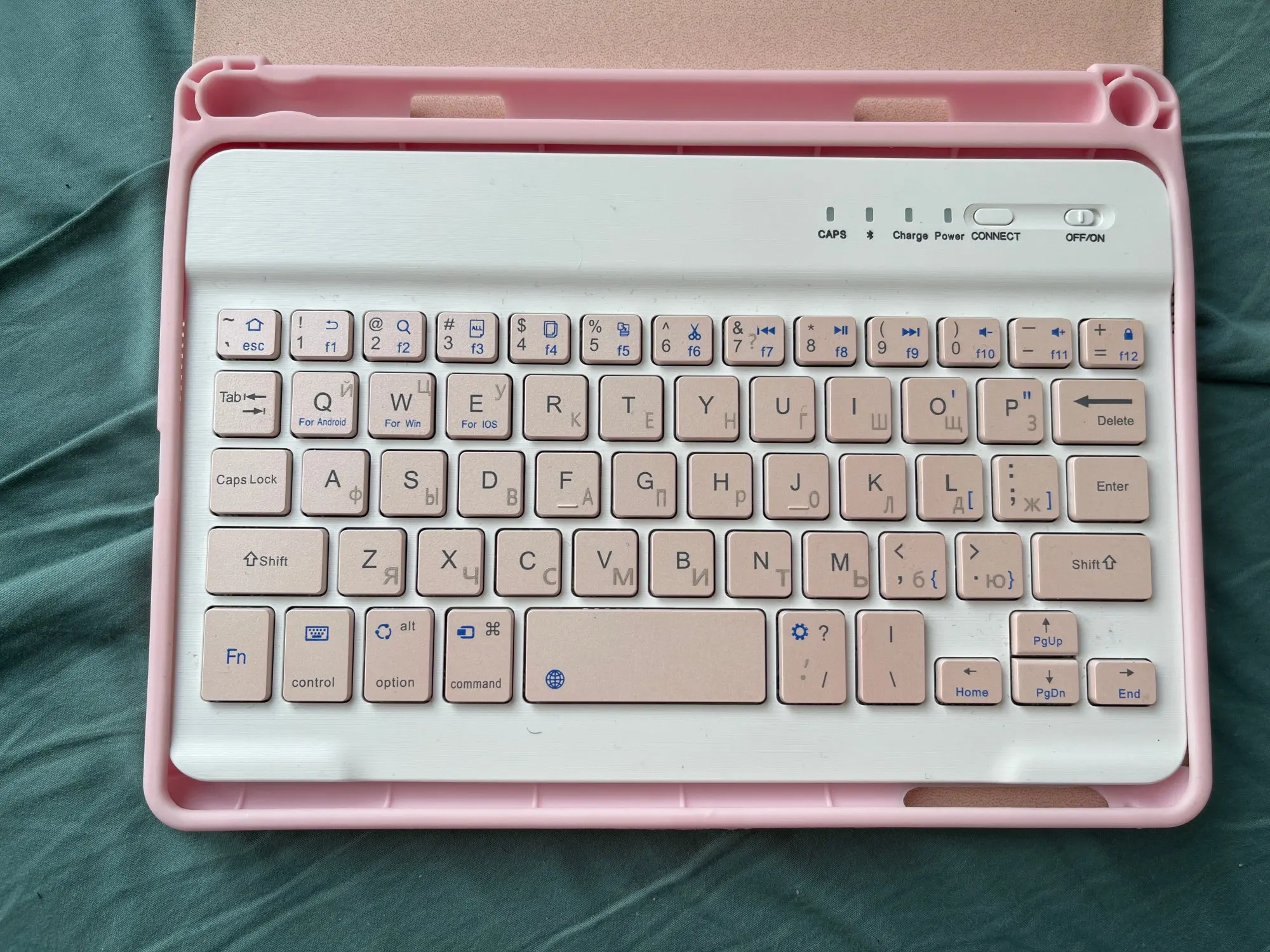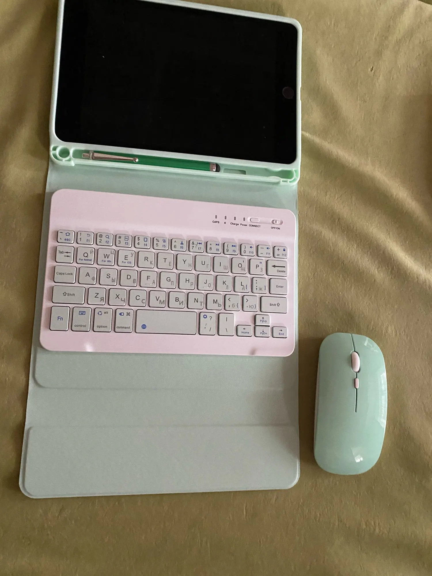 Хороший чехол, клавиатура и мышь работают довольно хорошо. Красивый розовый цвет, хорошо упакован, быстрая доставка. Я рекомендую его
