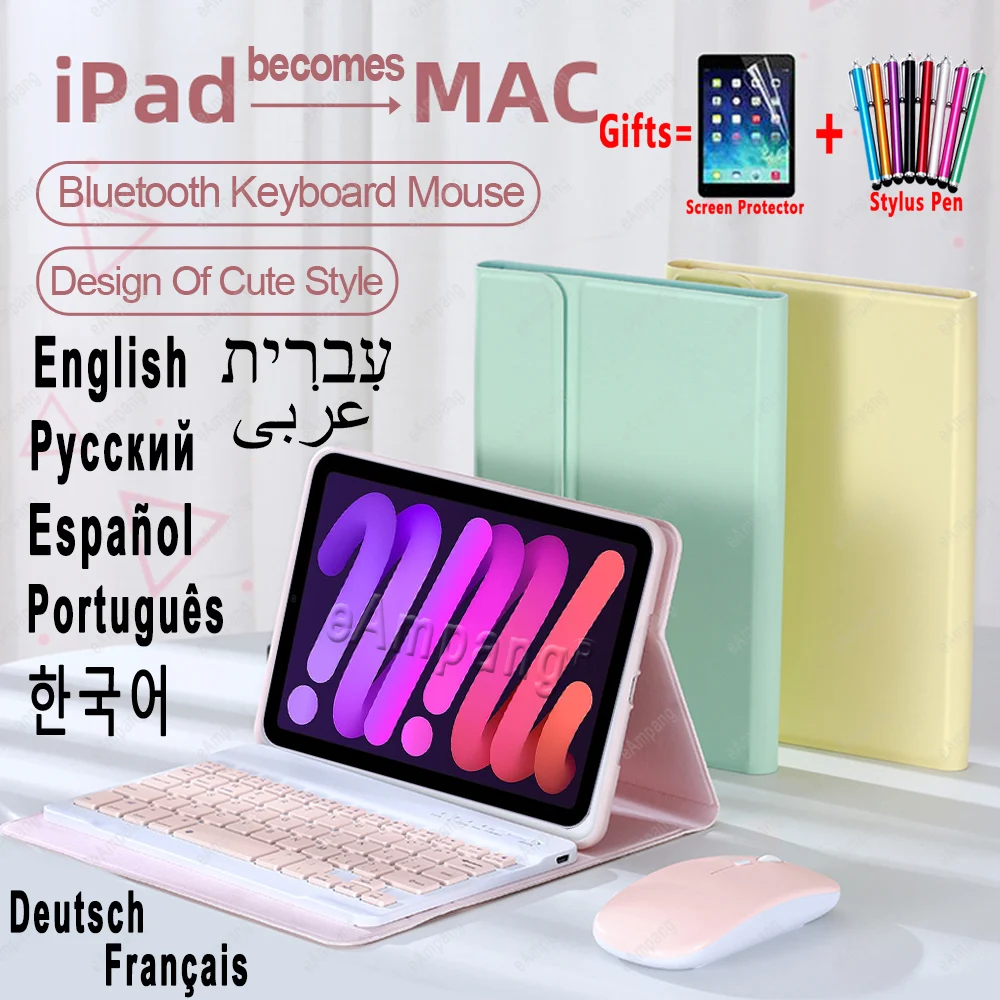 Чехол для Apple iPad mini 6, клавиатура и мышь, для iPad mini 4, 5, Mini, 6-го поколения, 2021, 8,3, A2568, русская, испанская, арабская клавиатура