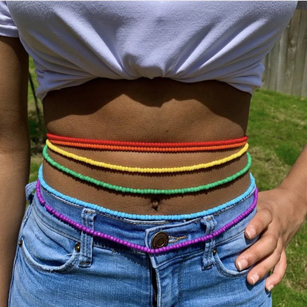 Цепочка для талии с бусинами Женская, летняя цепочка из бусин в африканском стиле для радужные наборы, пикантная цепочка для бикини, винтажная бижутерия для тела