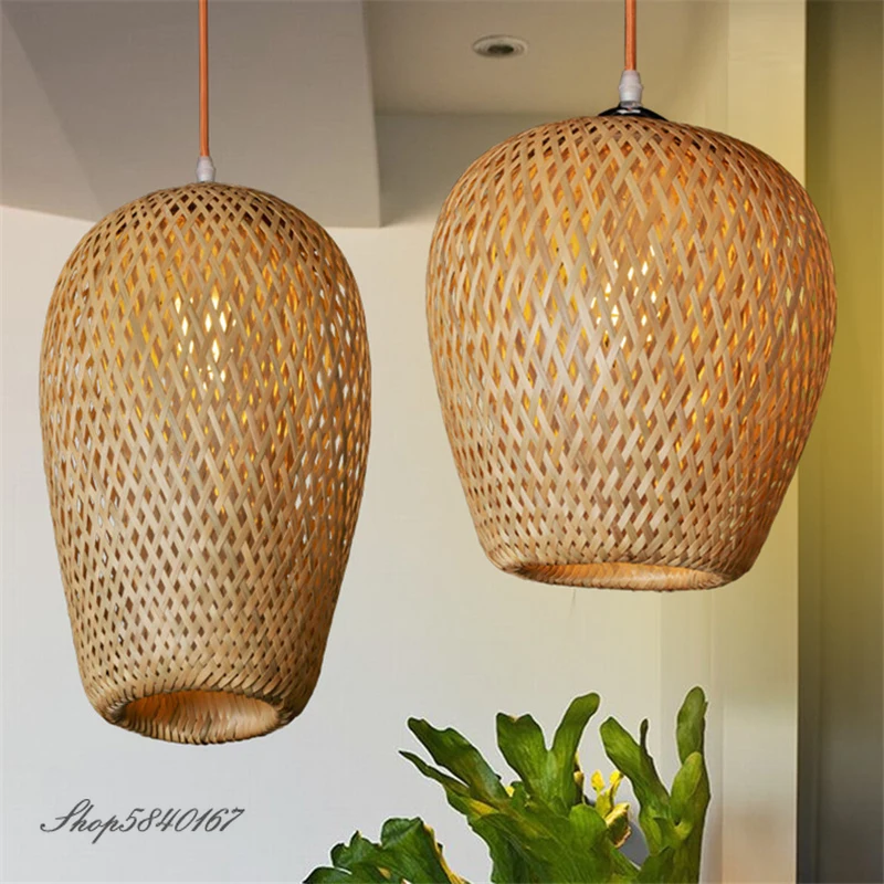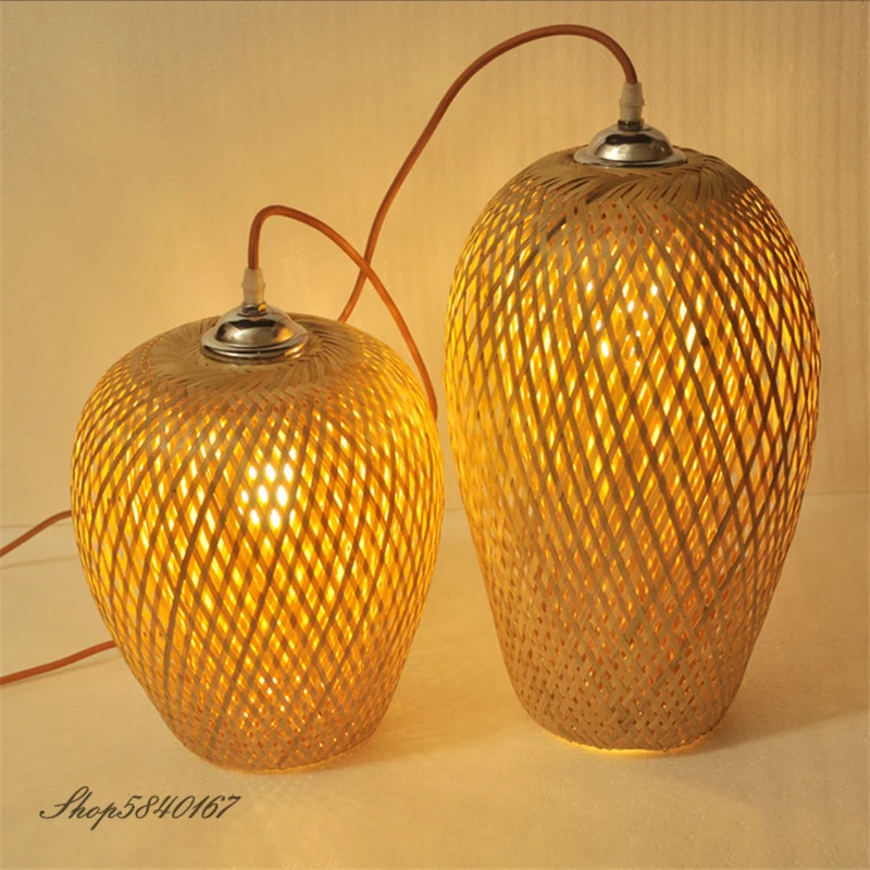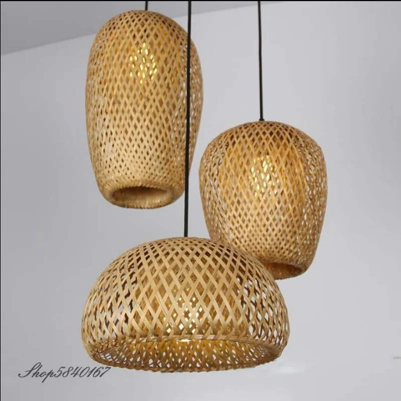 Китайский бамбуковая Подвесная лампа ручной работы, лампа E27 в стиле лофт для гостиной, столовой, ресторана