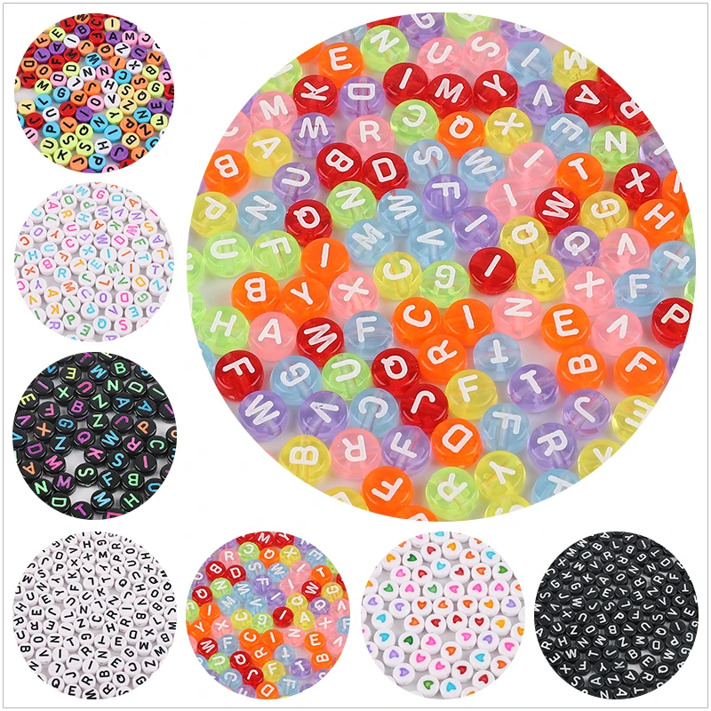 Бусины акриловые плоской формы с буквами для изготовления ювелирных изделий для женщин и детей, 100 шт.