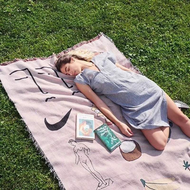 Скандинавский розовый гобелен для отдыха, маленький свежий диван, одеяло для сна, коврик для пикника, вязаное одеяло для взрослых, путешествий, самолета