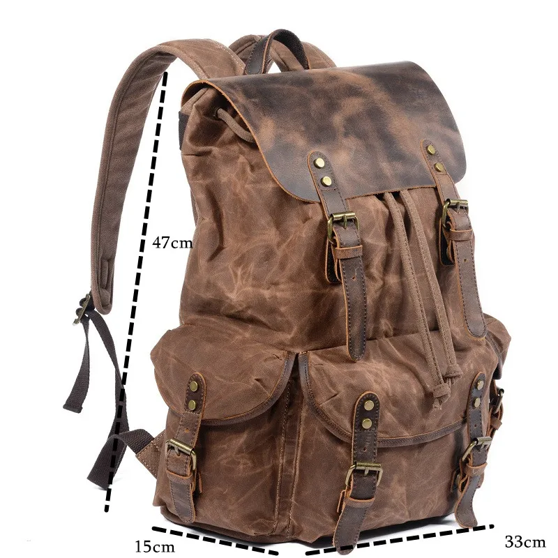 Мужской Холщовый кожаный рюкзак, винтажные водонепроницаемые Рюкзак...