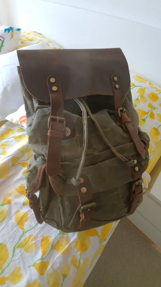 Водонепроницаемый рюкзак из вощеной ткани и натуральной кожи для му...