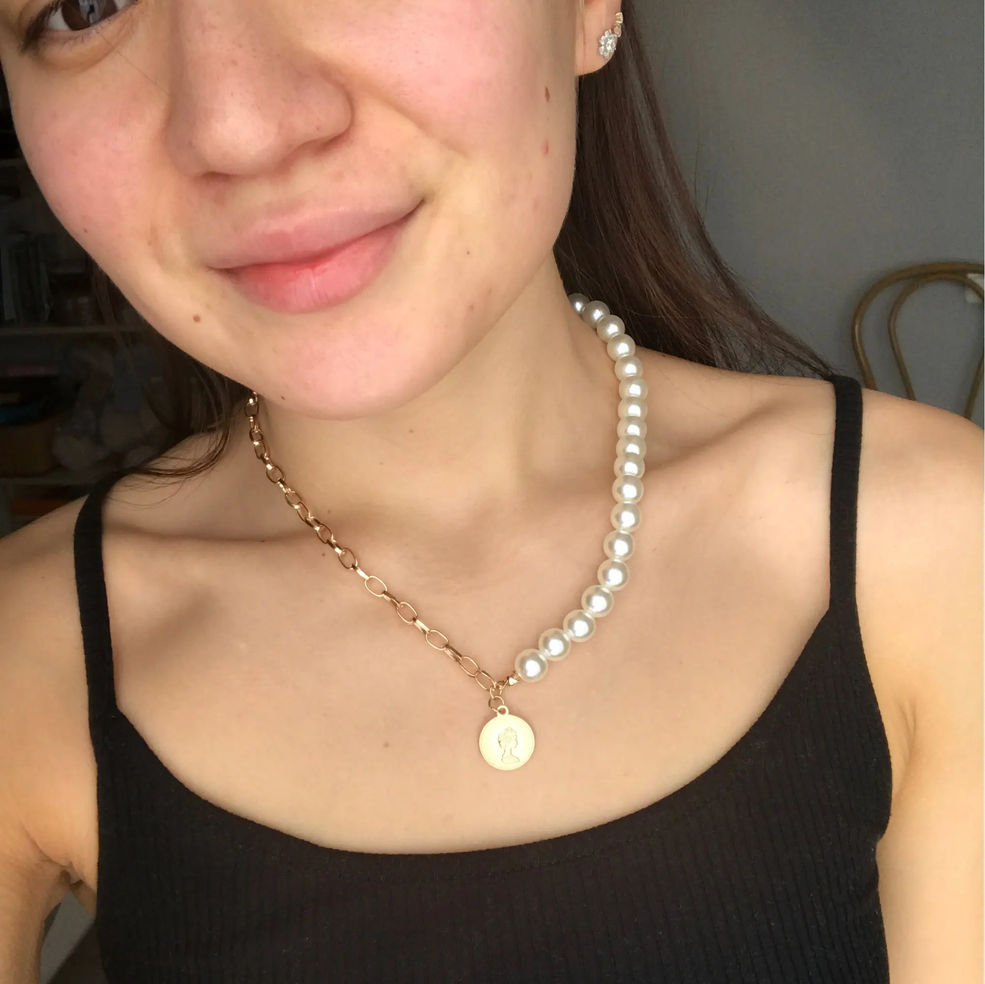 Цепи не плохие, в принципе, все как на фото, они очень лёгкие, но жемчуг сильно пах ацетоном, наверное бусины сверху чем-то покрыты, чтобы не облезали, ну и выглядят жемчужины дёшево, но за такую цену, наверное не стоит придираться. СПАСИБО продавцу за быструю доставку.