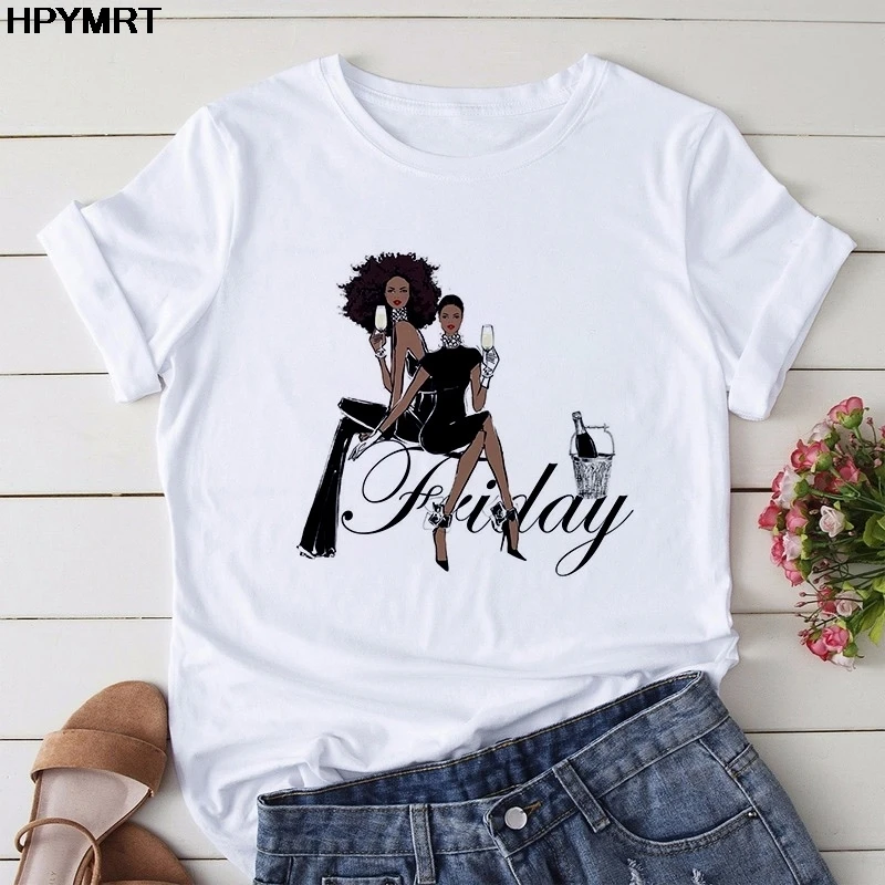 Новые летние Графические футболки для женщин vogue Urban black girl Friday Футболка с принтом 90s best friends Футболка женская одежда