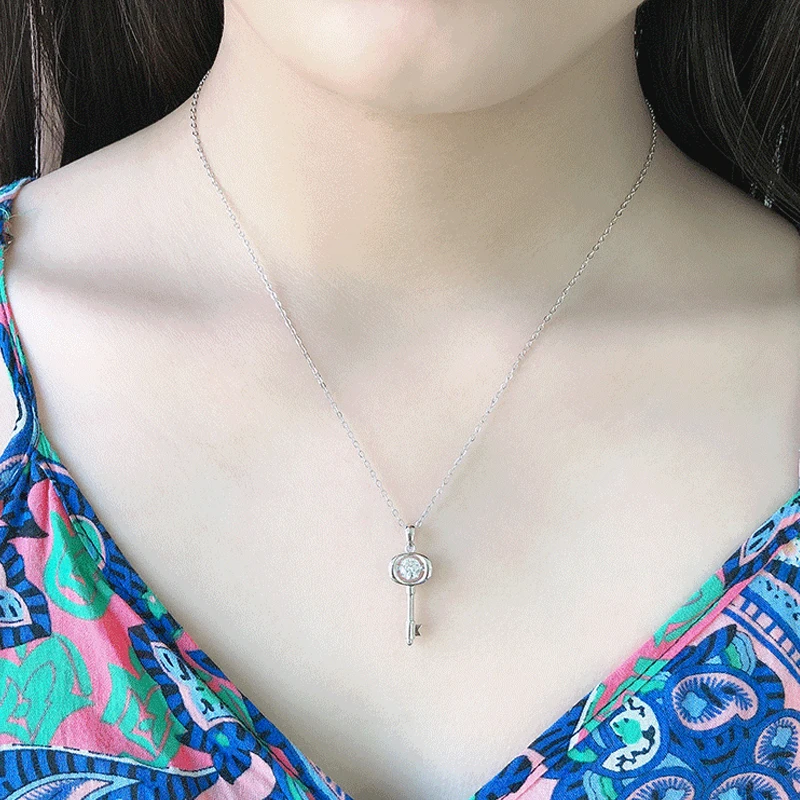 Ожерелье с подвеской GEM'S BALLET, из стерлингового серебра 925 пробы, 0,5ct, D цвет, Moissanite, бриллиантовый ключ, с мерцающим танцевальным камнем, Moissanite