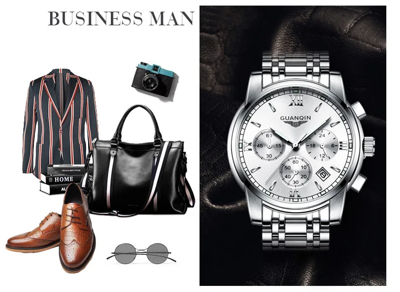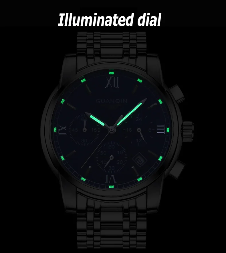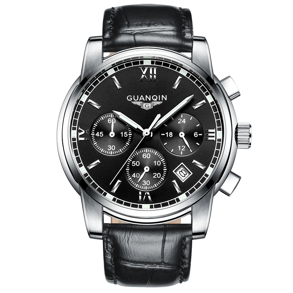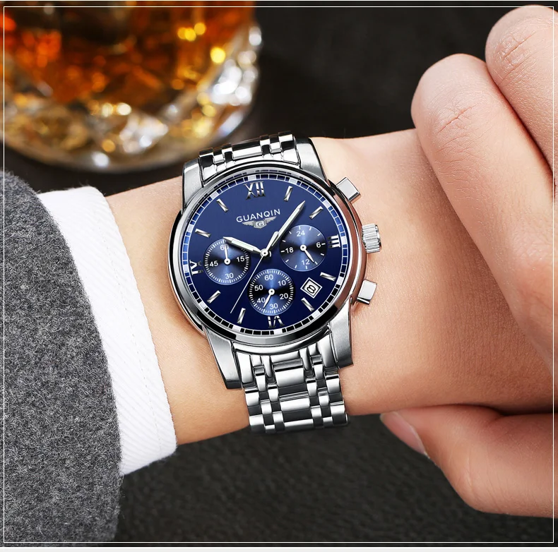 GUANQIN мужские часы в деловом стиле, лучший бренд, Роскошные Кварцевые часы, мужские часы из нержавеющей стали с датой, водонепроницаемые спортивные наручные часы для мужчин