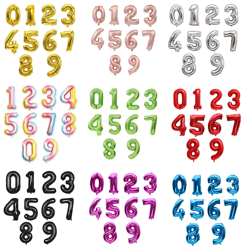 Цифровой Воздушный шар из алюминиевой фольги, 1632 дюйма, золотистый, серебристый, розовое золото, цифры, украшение для праздника, дня рождения, детской вечеринки