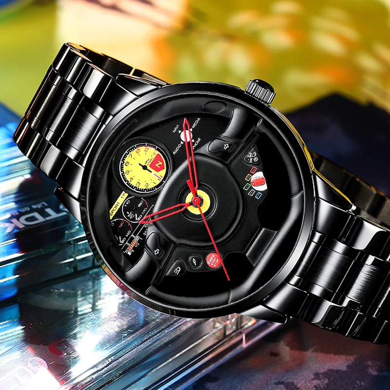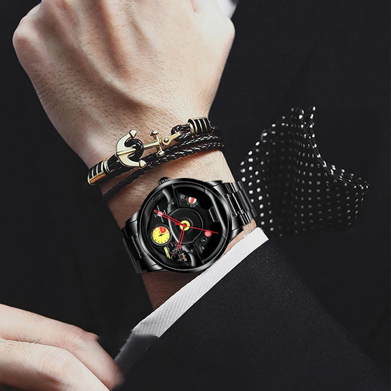 Спортивные часы с ободком колеса для автомобиля, индивидуальный дизайн, Топ бренд, роскошные нарядные часы, водонепроницаемые креативные наручные часы для мужчин, Relogio Masculino