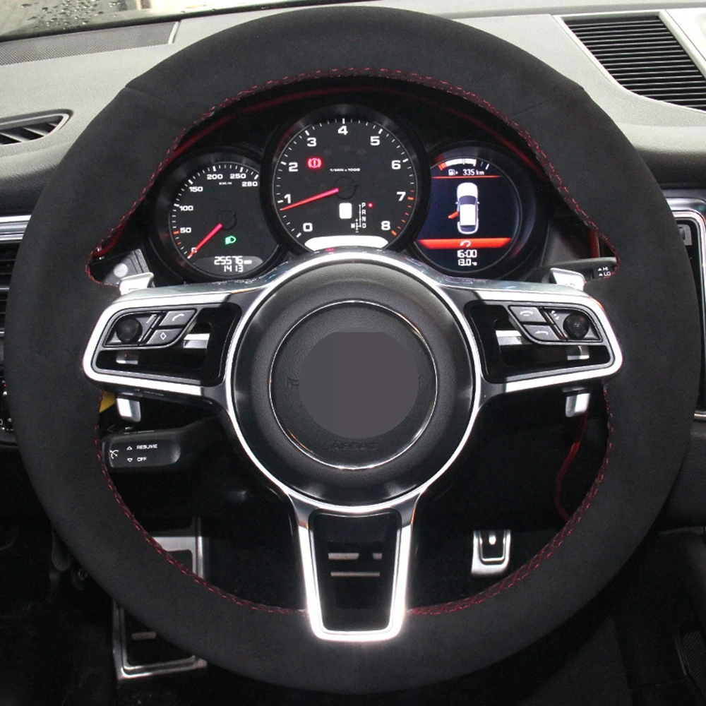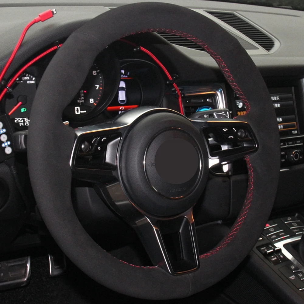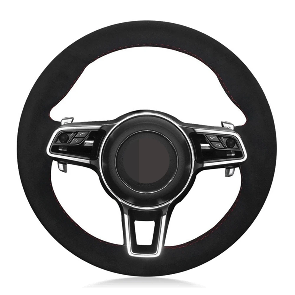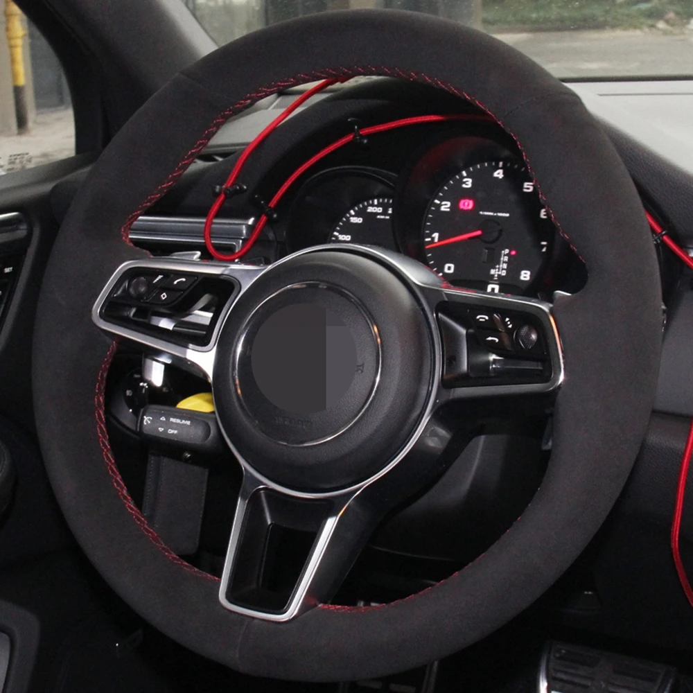 Чехол рулевого колеса автомобиля черная замша ручной работы сделай сам для Porsche Macan Panamera 2013-2019 Cayenne 2015-2019 718 911 2015-2019