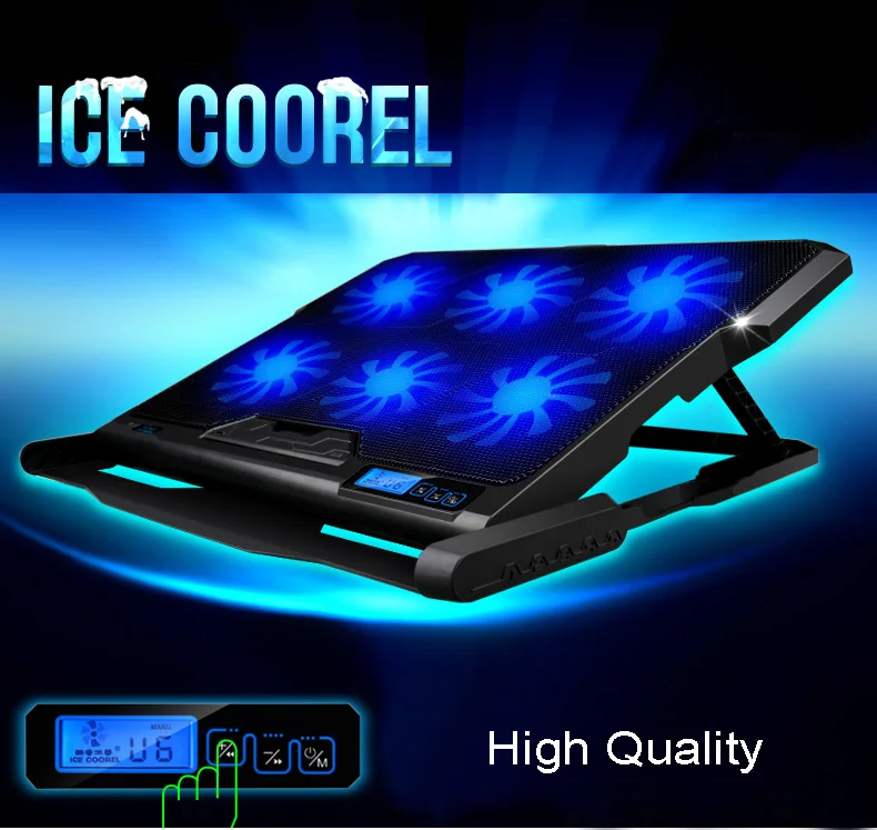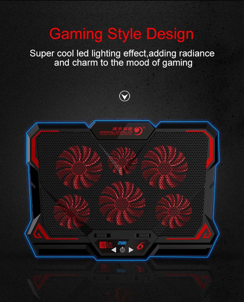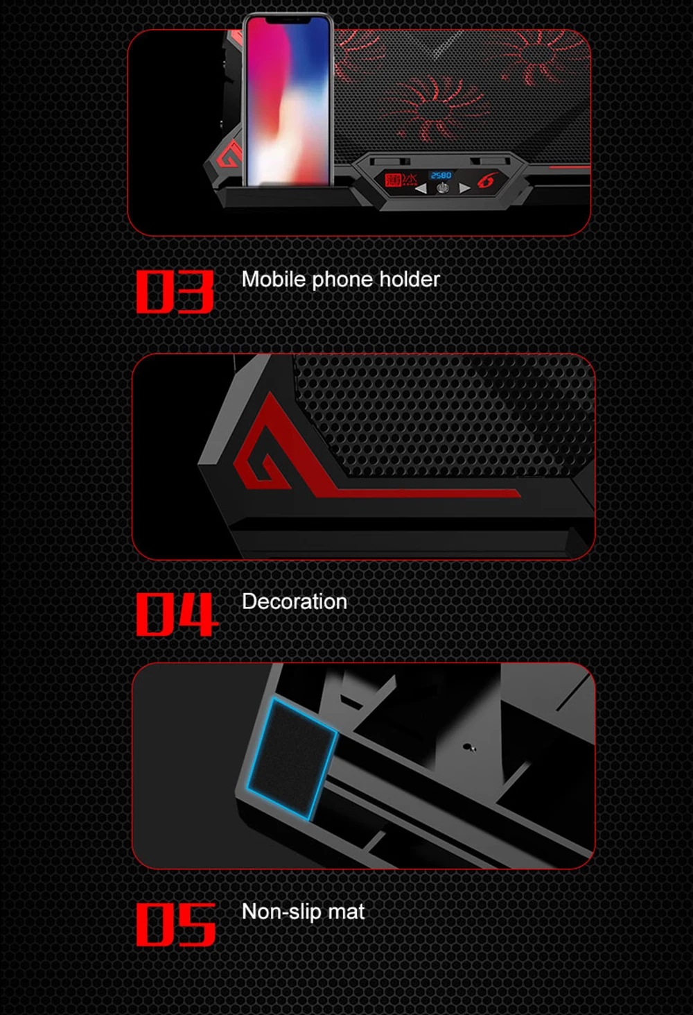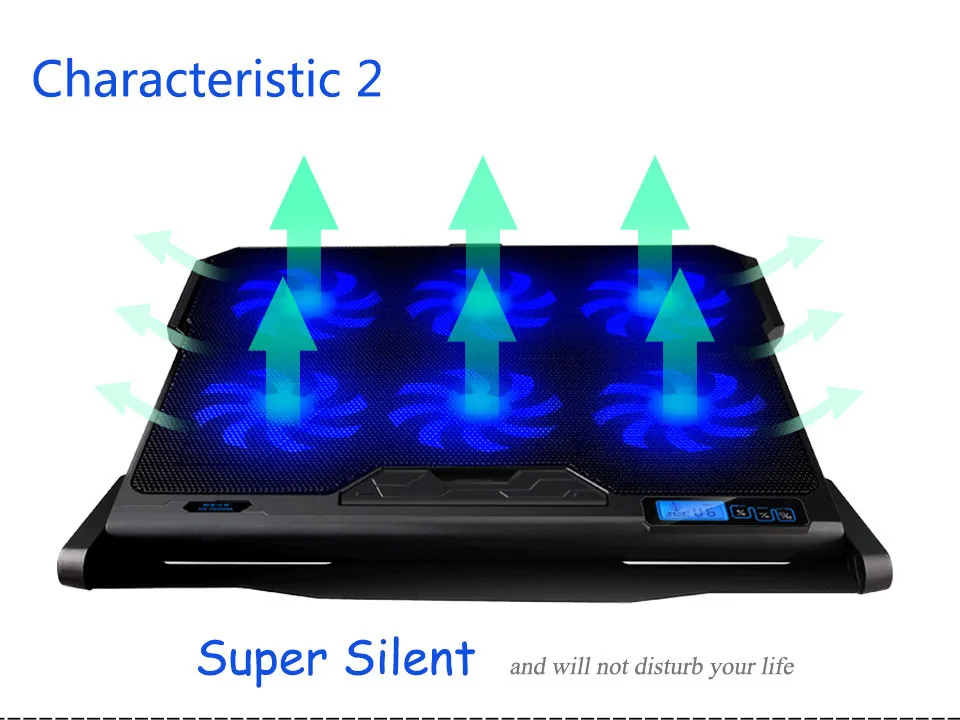 Охлаждающая подставка для игрового ноутбука, 6 бесшумных вентиляторов со светодиодный ным дисплеем