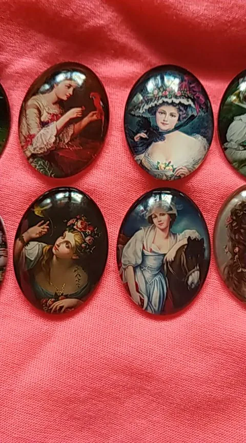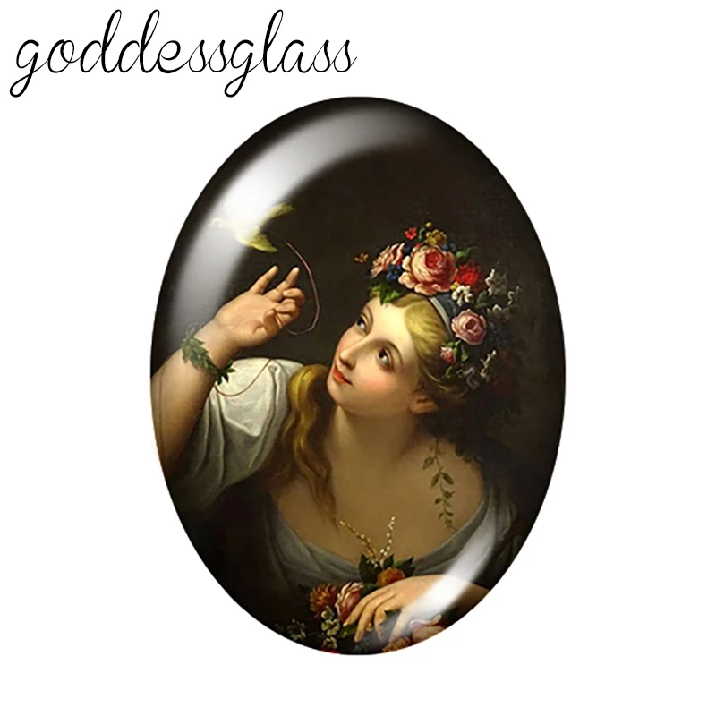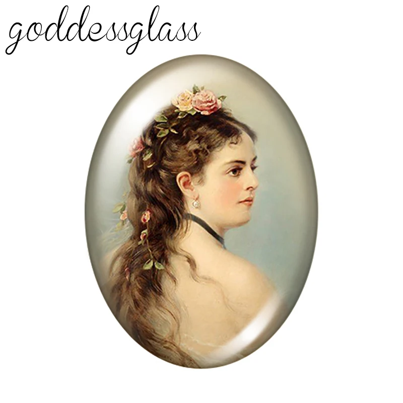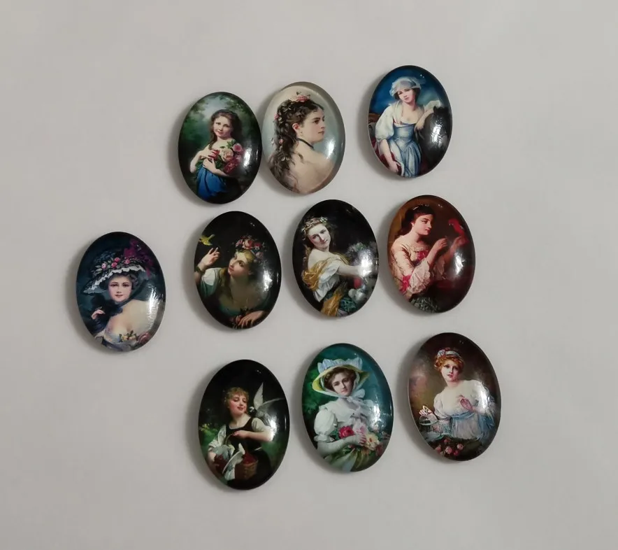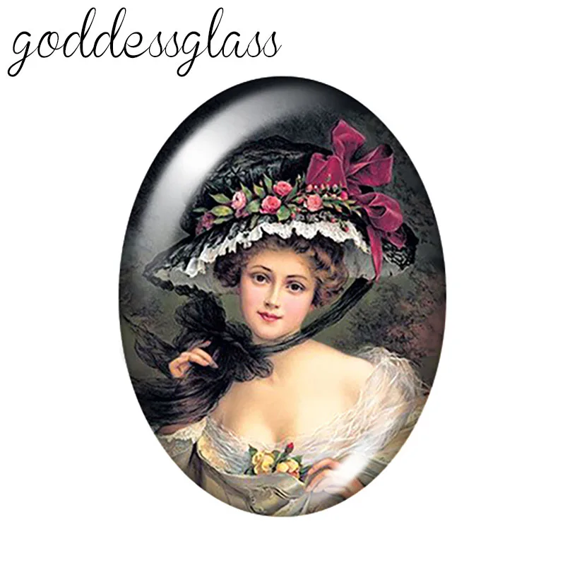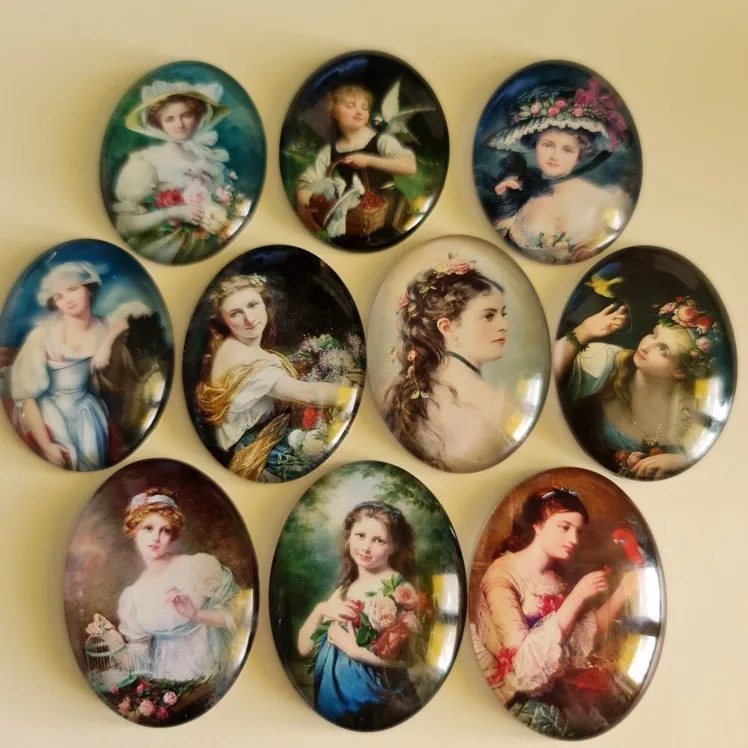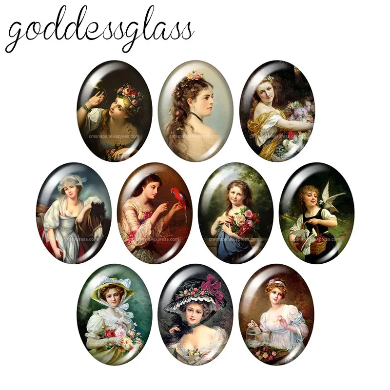 Винтажные женские картины маслом стиль 10 шт. смешанные 13x12 мм18x25 мм30x40 мм овальные фото стекло кабошон демонстрация плоская задняя часть