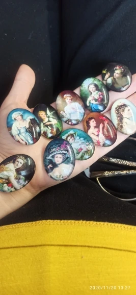 В первый раз после покупки многих других фото/печать кабошонов на AliExpress, я получил те, что сделаны из стекла и не облачно акрил. Они такие же, как на фото, и я в восторге от них! Я настоятельно рекомендую этого продавца, если вы хотите кабошоны наивысшего качества, такие как.