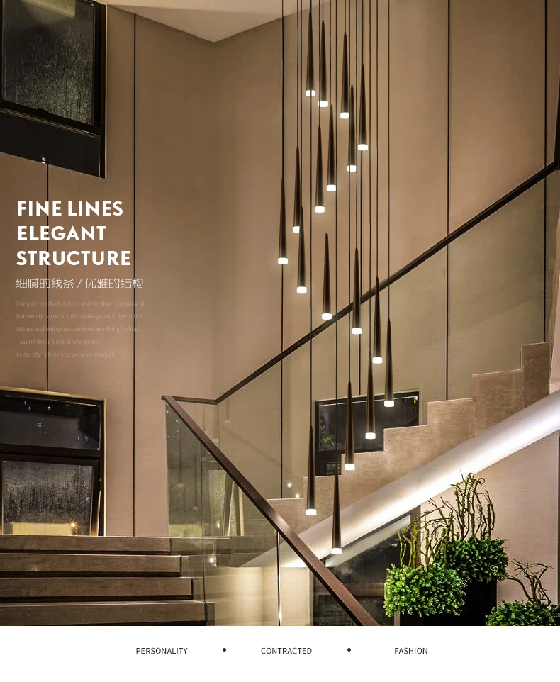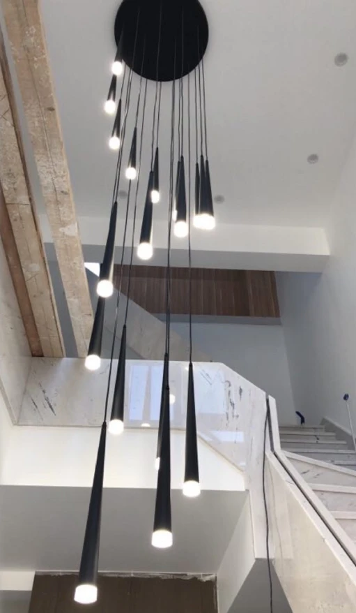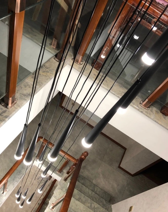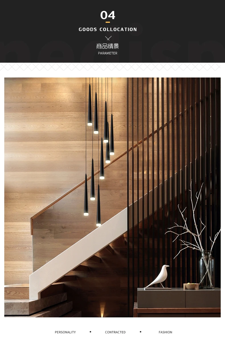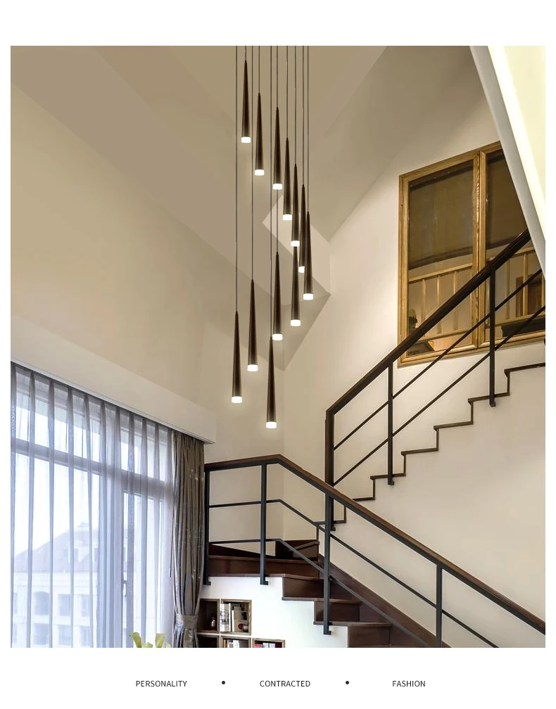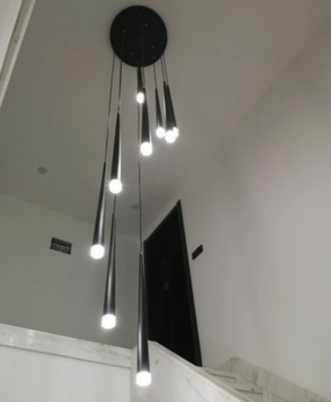 Современная лестница большая люстра Nordic Simple Ресторан черная длинная трубка светодиодный подвесной светильник коридор вход балкон освещение