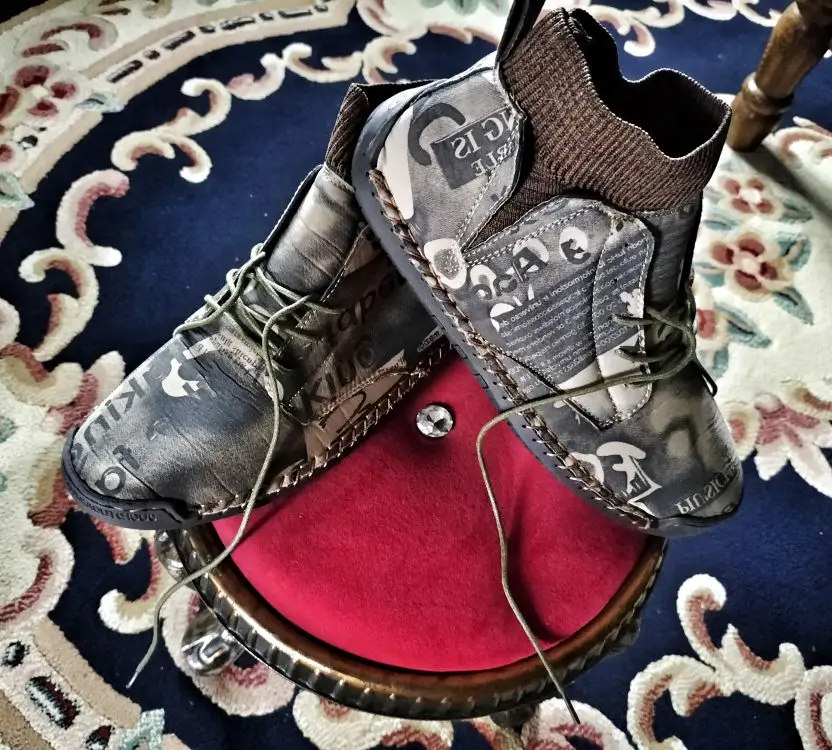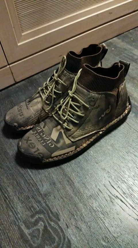 Отличная обувь. Принт не такой яркий, как на фото, он немного выцветает и выглядит более как камуфляж вместо газетной бумаги, но они очень легкие и удобные... Однако их немного сложно надеть. Даже когда я получил на 1/2 размера больше, чем обычно.
