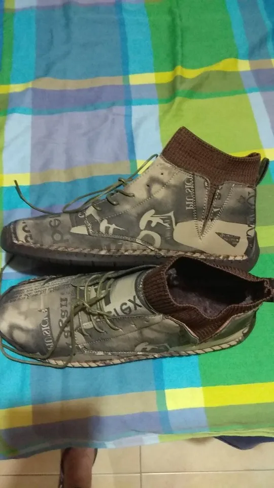 отличные ботинки, пришли вовремя, красивые, тёплые, пушистые, цвета в точности соответствуют,фотографии, быстрота доставки очень понравилась, подошва мягкая,, шнурки прелестные, цветные, ботинки испробованы в мокрую погоду, не промокают.... также ходил в них на работу, а это очень далеко, в холодную зимнюю погоду, нога не замёрзла, и даже когда стоял на остановке.... Тоже было тепло, а также дизайн ручной работы оставляет желать лучшего, спасибо большое!!!