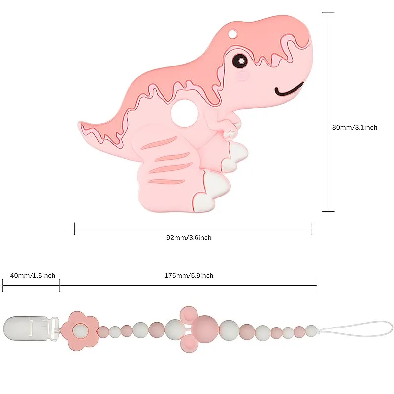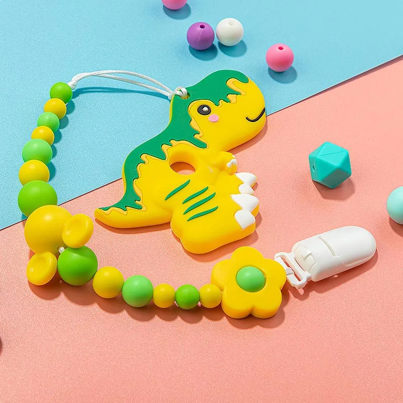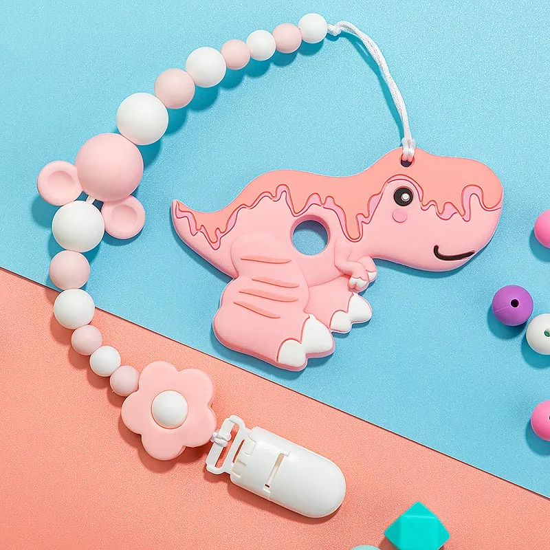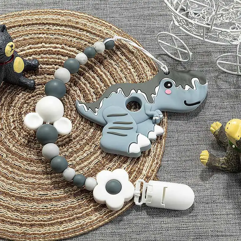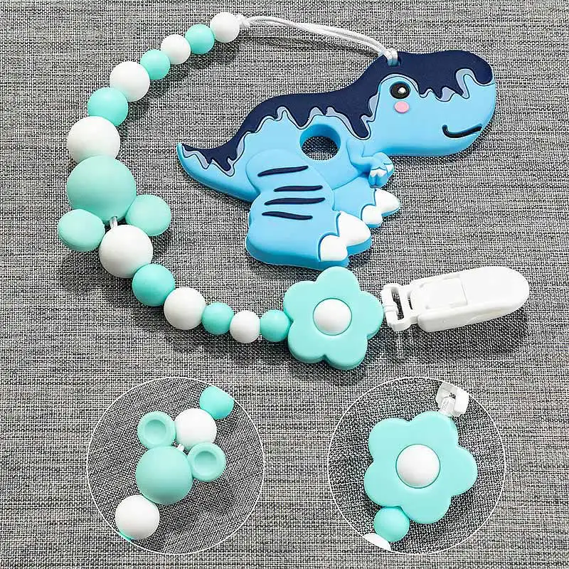 Грызунок-цепочка для прорезывания зубов, 1 шт., с изображением дино...