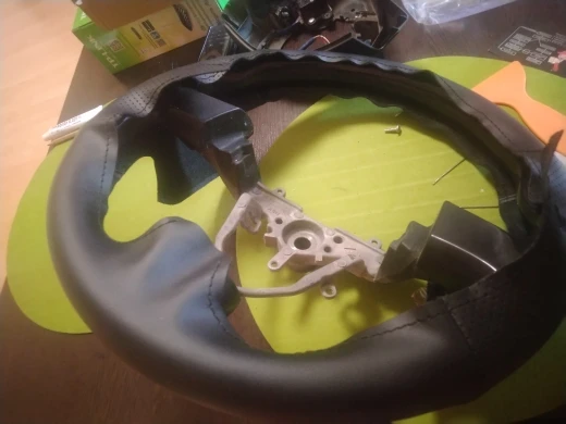 Материал очень похож на натуральную кожу, но есть сомнения, что может быть экокожа (продукт переработки кожи, а не дермонтин). Садится на руль плотно, шить без достаточной сноровки весьма непросто. Обшивал с перерывами почти 12 часов. Обшить не снимая руль вряд ли получится, не рекомендую брать черные нити - всё сливается, глаза сломать можно. В целом результат, хоть и не без огрехов, порадовал. Брал на Subaru Outback 2005 г.