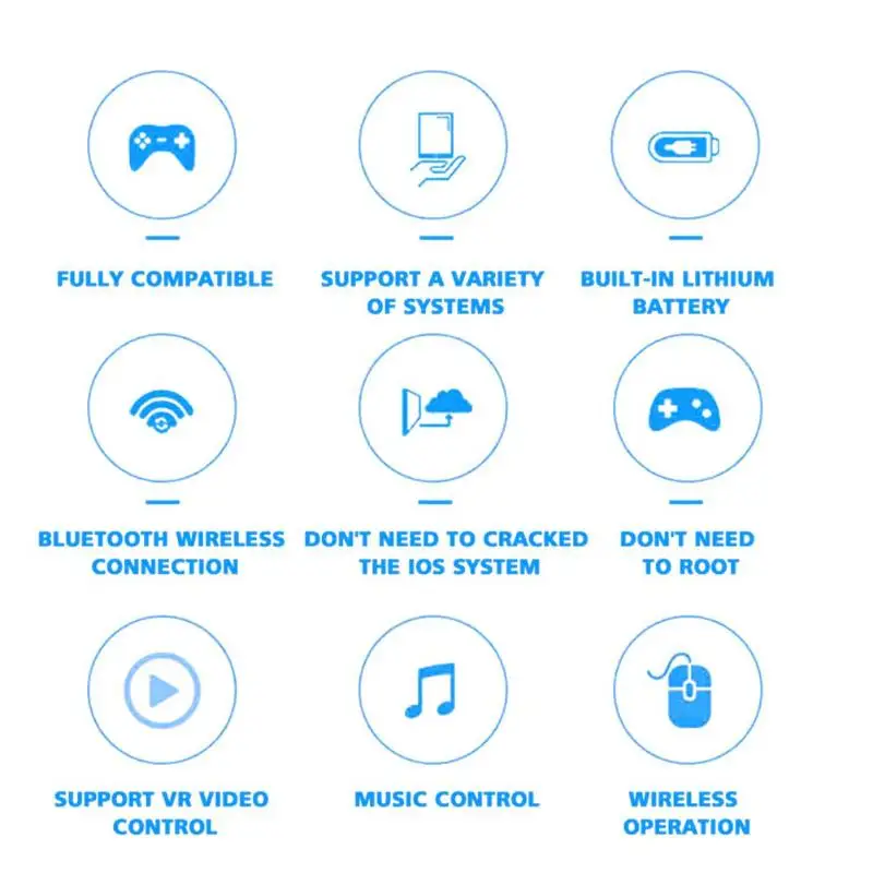 Основные характеристики: Расстояние передачи: 2 - 8 м Встроенный литий-ионный аккумулятор Примечание: usb-кабель не входит в комплект Бренд: MOCUTE Модель: MOCUTE - 054 Функции: Bluetooth Версия Bluetooth: V3.0 Совместимость с: Android,IOS Тип подключения: Bluetooth Поддержка системы: Android,IOS Материал: АБС-пластик Тип батареи: Встроенный Емкость аккумулятора (мАч): 400 мАч Способ зарядки: USB зарядка Время зарядки: 2 - 3 часа Время работы: 20 - 30 часов Размер продукта: 17,00x14,00x6,00 см/6,69x5,51x2,36 дюймов Посылка: игровой контроллер-1 шт. Ключевые особенности: 1. Стандартное Android устройство (режим A) В меню, если левый джойстик может перемещать курсор, Кнопка A & X-кнопка ввода, кнопка B & Y-Кнопка возврата; Это означает, что ваша Мобильная система может поддерживать международный стандартный геймпад, просто скачайте игру и играйте напрямую. (Если не может работать, обратитесь к части андроид MTK mobile operation) 2. Загрузка игры: Отсканируйте qr-код в руководстве, чтобы войти в Центр загрузки MIGAMEPAD, затем вы можете скачать приложение Newgame или Migamepad или вечерние приложения для игр. E. g. Newgame Платформа: после входа в приложение Newgame необходимо проверить управление menugamepad. Если соединение успешно, вы можете напрямую играть в игры в Newgame center. Ключ m-это ключевые функции в новой игре. Примечание: приложение Newgame автоматически подключается к Протоколу Newgame, при смене на другую платформу нажмите кнопку HOME телефона, чтобы выйти из платформы Newgame. Игровой центр MIGAMEPAD имеет все геймпады и поддерживает игры NES/GB/GBC/SFC/SMD/GBA/N64/MAME/PS. С помощью rs можно также загрузить файлы simulator BIN в папку для файлов игр на мобильном телефоне, затем можно использовать программное обеспечение MIGAMEPAD, чтобы открыть игровой файл, как и многие известные игры: Super Mario, Metal Slug Sangokushi и так далее. 3. Андроид MTK/PC устройство (Y режим) Как и версия Redmi 3G, Huawei Honor3X, CooIPAD, Zhongxing и т. Д., эти мобильные телефоны старого стиля используют Процессор MTK, из-за плохой совместимости MTK, они не могут поддерживать соглашение о международном стандартном геймпаде. Поэтому, если по стандартному методу подключения Android, будут возникать Необычные проблемы. Мы устанавливаем режим MTK для поддержки игр MIGAMEPAD. В этом режиме, выход для букв клавиатуры, может использоваться для установки игры на функции ПК. 4. Режим Android/iOS VR (режим A) С этим режимом только для BaoFeng или другого приложения VR! A-кнопка ввода, B-Кнопка возврата, X-Кнопка меню, левый джойстик может перемещать курсор в меню приложения, при воспроизведении видео с левым джойстиком, вверх-Громкость +, вниз-громкость, слева быстро перемотывается, справа быстро вперед (Примечание: В приложении i05 BaoFeng VR должен быть установлен геймпад-это MOCUTE вариант). 5. Для IOS ICade mode (B mode) Войдите в APP store или другой Apple store, найдите «iCade», затем вы можете найти игры iCade, которые поддерживают геймпад, скачать и установить, а затем ok. Как Akane Lite, Brothers, TTR Premium и так далее. Прежде чем играть в игры, пожалуйста, установите режим ввода клавиатуры на ввод на английском языке и можете вводить английские буквы, затем ОК (некоторые игры, возможно, нужно использовать iCade во время игры). 6. Для IOS NEWGAME mode (X mode) Сканируйте qr-код в Руководстве для загрузки приложения NEWGAME! Затем вы можете использовать геймпад, чтобы играть в игры в приложении! E. g CF или Herok eu Mode m клавиша-это ключевая функция.