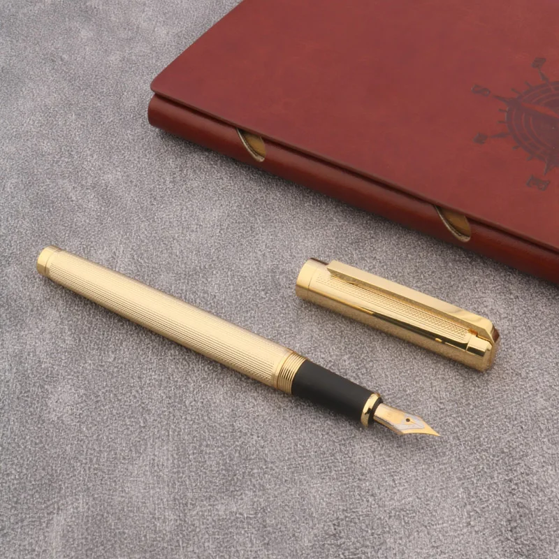 2022 Роскошная металлическая перьевая ручка 707, Классическая полосатая скульптура, канцелярские принадлежности, офисные принадлежности, золотые чернильные ручки
