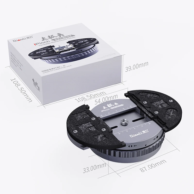 Особенности: 1. Вращающийся на 360 °, подходит для 99% мобильный телефон материнской платы. 2. Подходит для материнской платы или чипов шириной менее 54 мм. 3. Со слотом для хранения микросхем IC. Более удобный ремонтный чип. 4. Термостойкий материал. Посылка: 1 * материнская плата приспособление