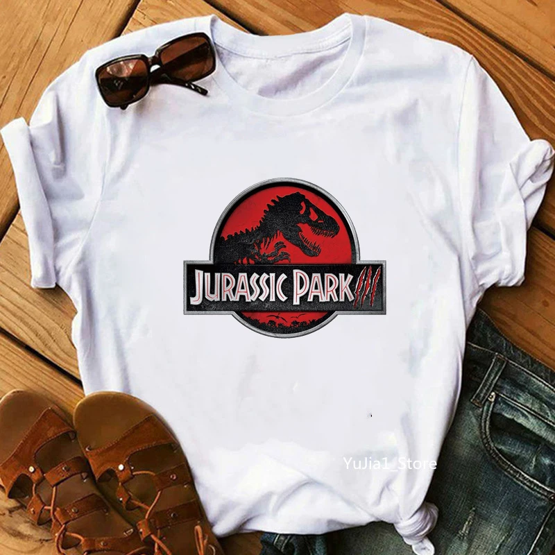 Футболка женская с рисунком парка Юрского периода, смешная Повседневная белая тенниска с короткими рукавами, крутая майка с рисунком парка Юрского периода, лето 2021